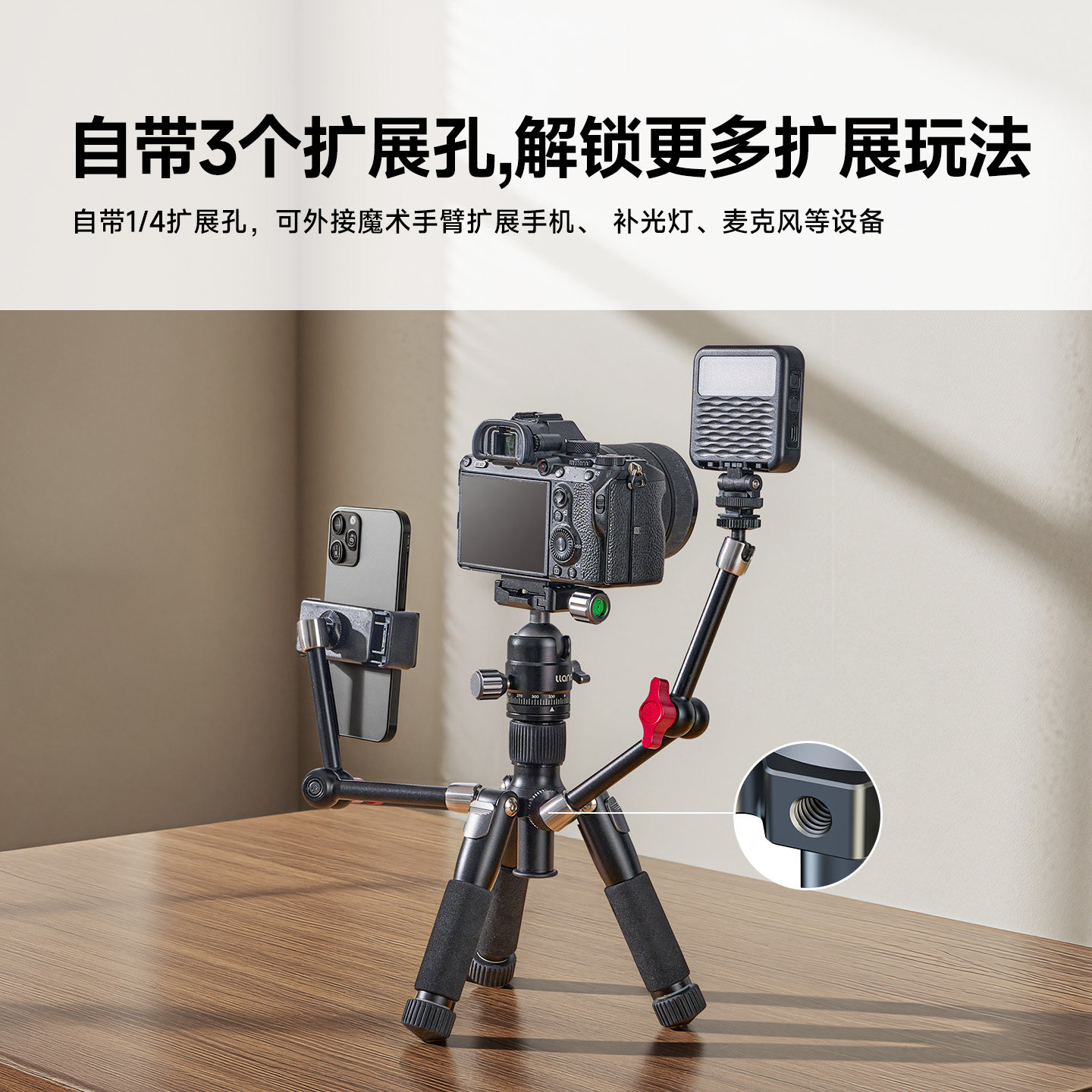 【站姐同款】绿巨能小隐迷你三脚架演唱会追星可拆卸mini小巧便携支架单反微单摄影相机三角架桌面手机支撑架