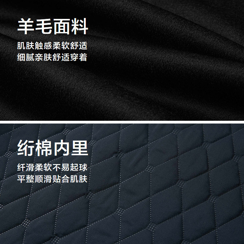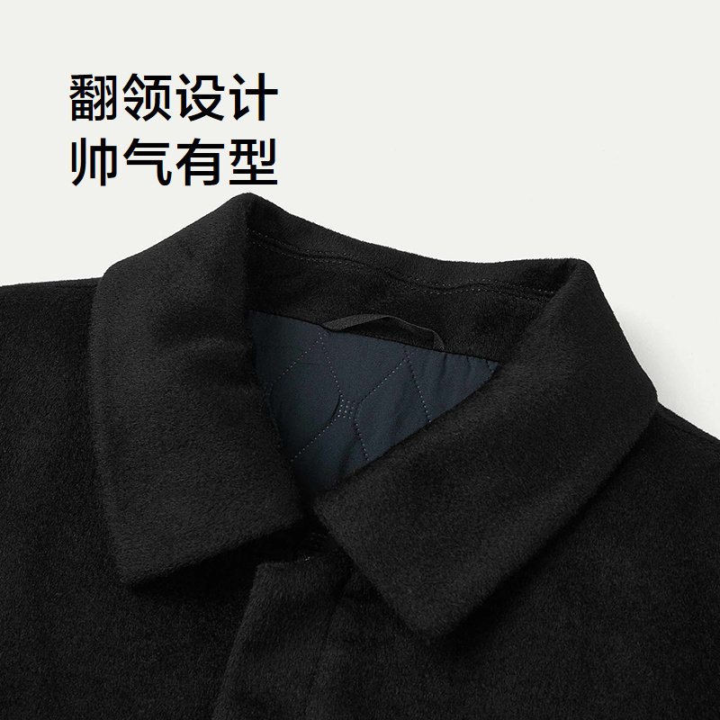 HLA/海澜之家商务纯羊毛翻领行政夹克25秋冬新保暖黑色厚外套男装