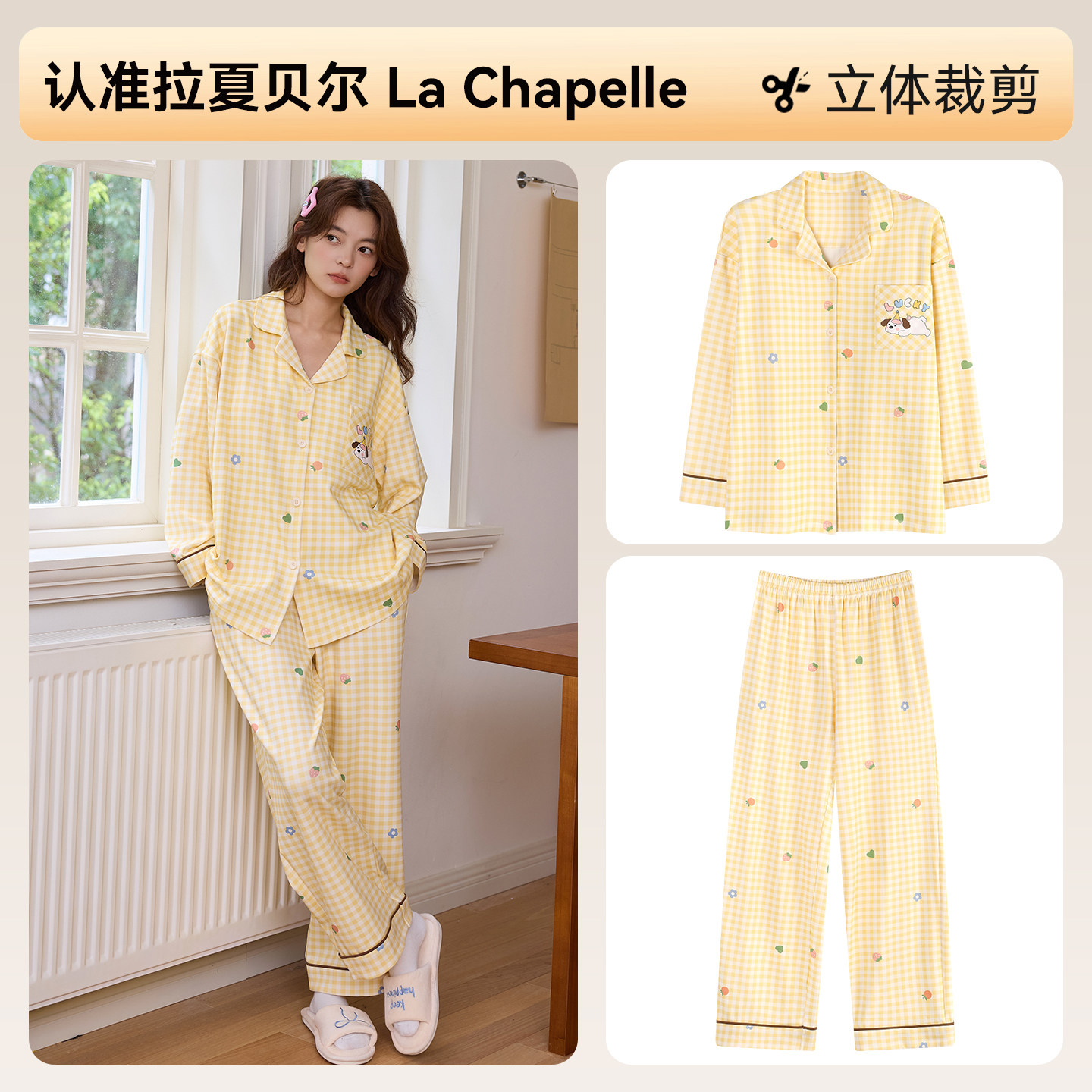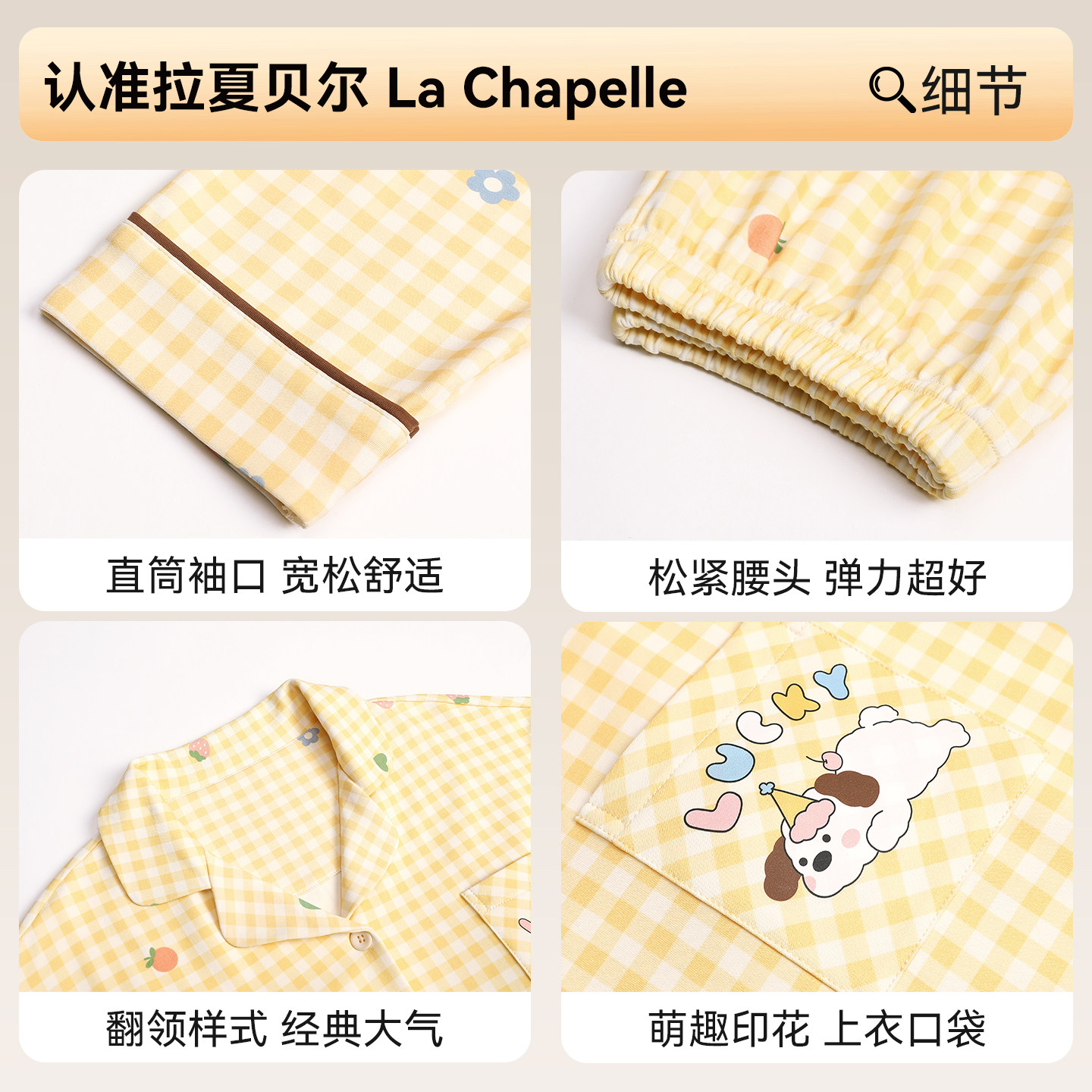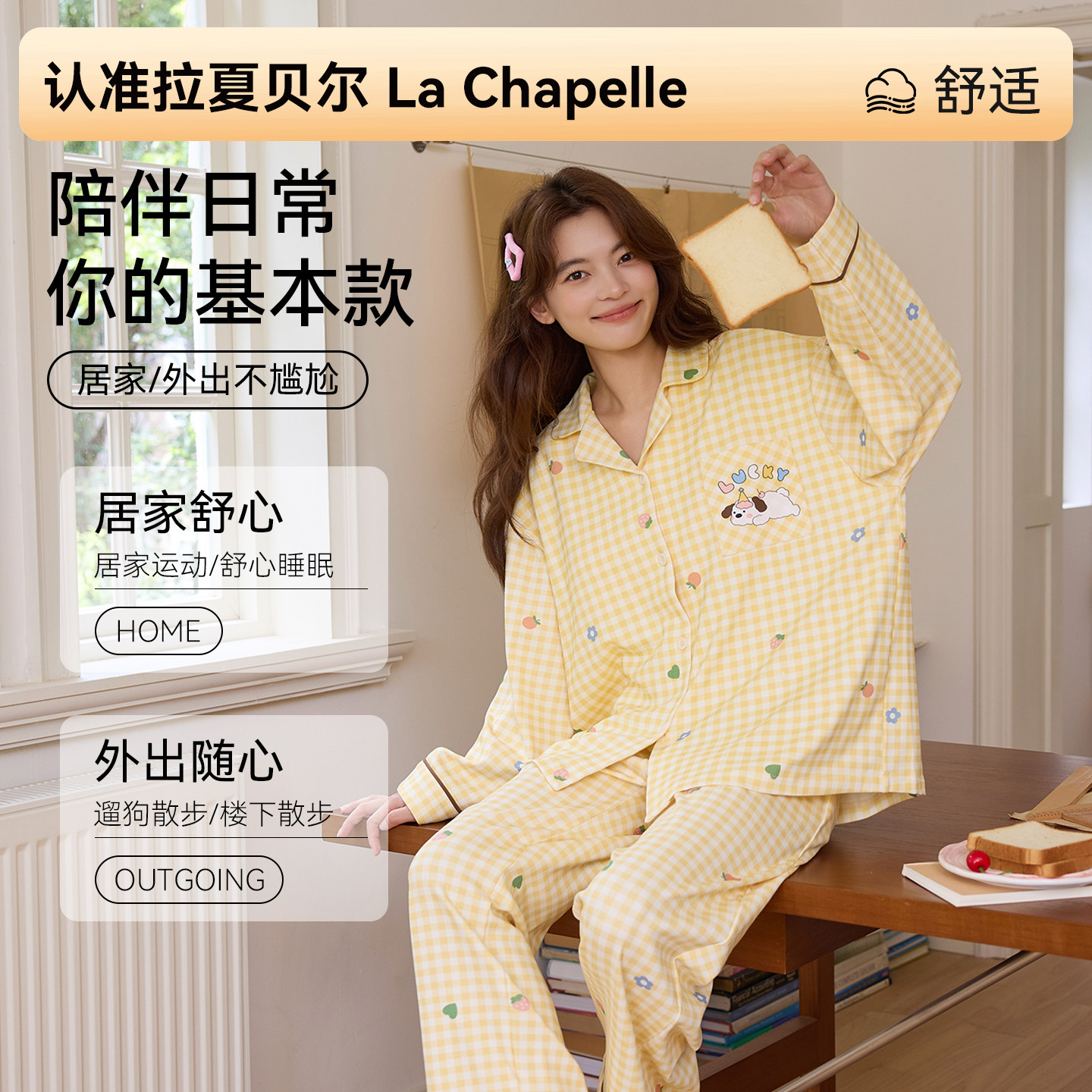拉夏贝尔纯棉女士家居服套装2026春季新款女生宿舍高级感睡衣女款