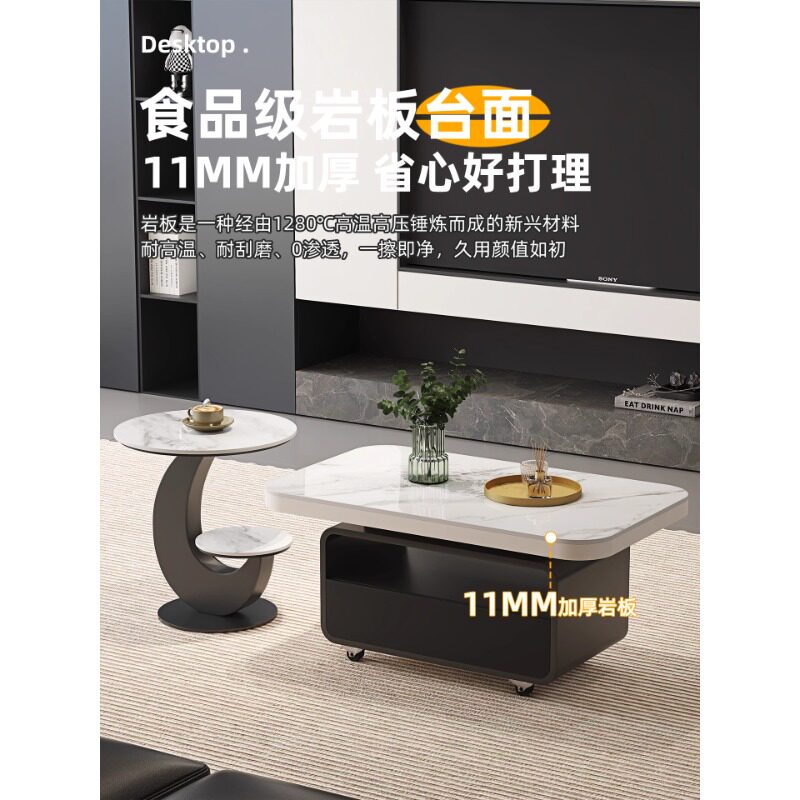 现代简约可移动茶几轻奢客厅家用小户型设计沙发边几意式胡桃木