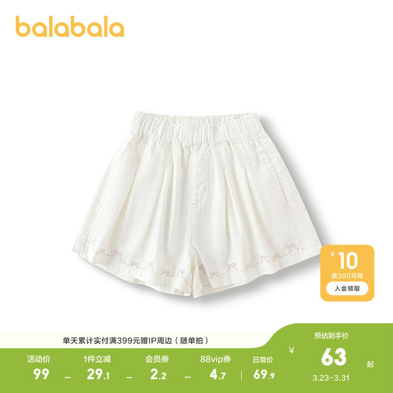 巴拉巴拉童装儿童短裤女童牛仔裤夏季A字裙裤凉感抑菌甜纯棉柔软