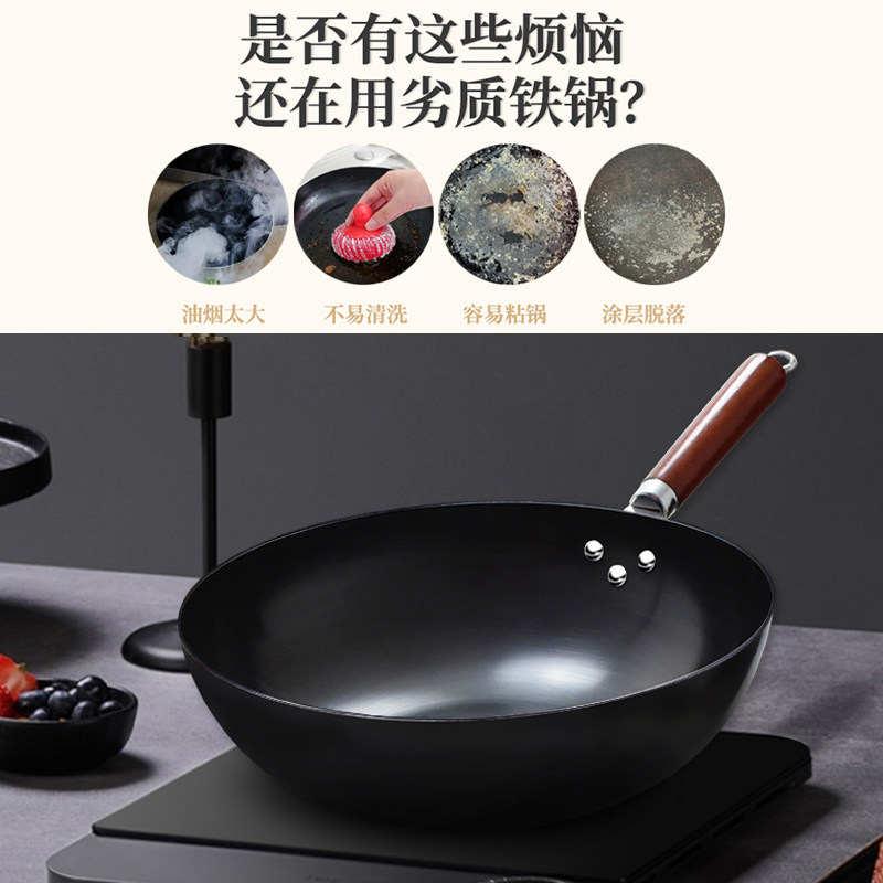 铁锅官方旗舰炒菜锅老式炒锅铁锅家用不粘锅无涂层燃气灶适用