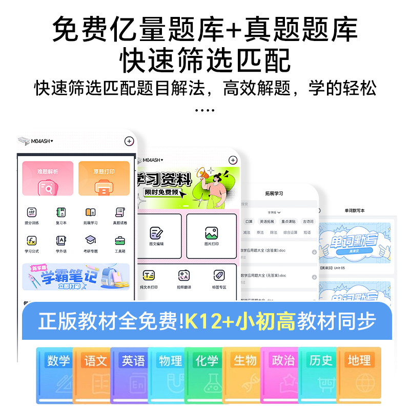 印先森M02A错题打印机学生便携式错题免抄神器小学初中生高中生错题扫描高清无墨迷你打印机喵喵机手机蓝牙