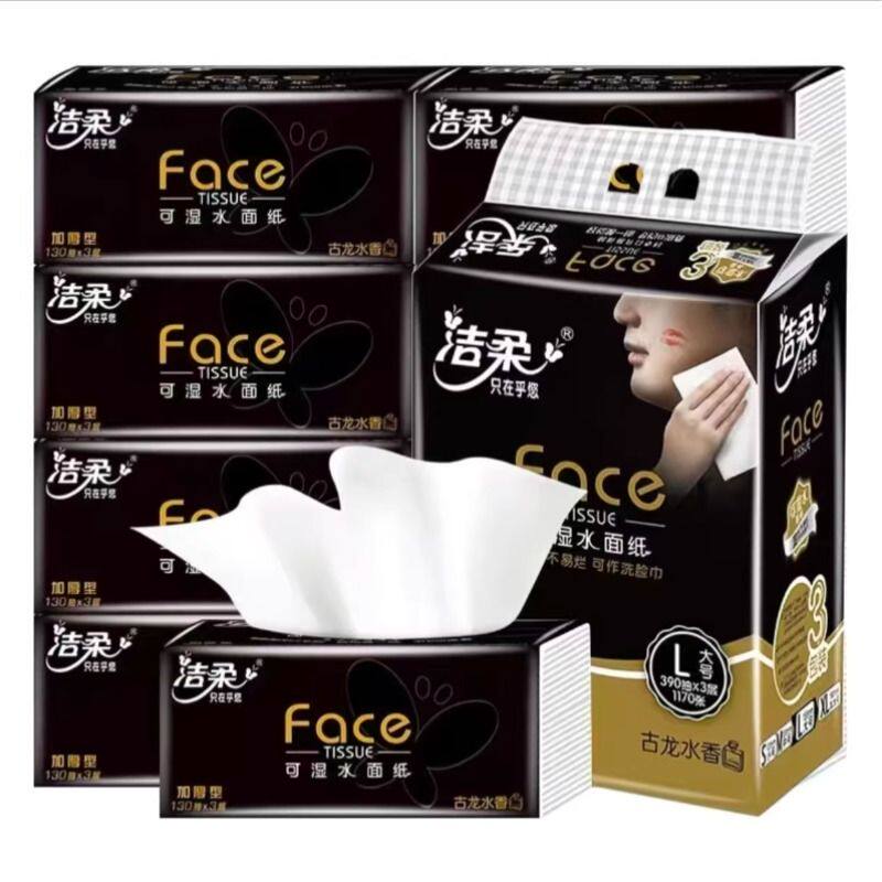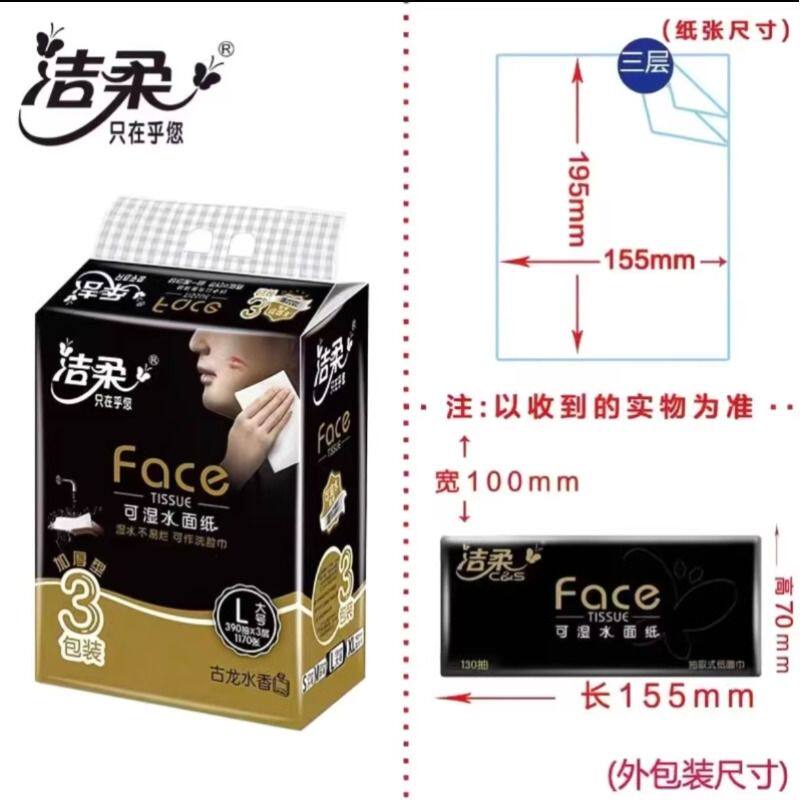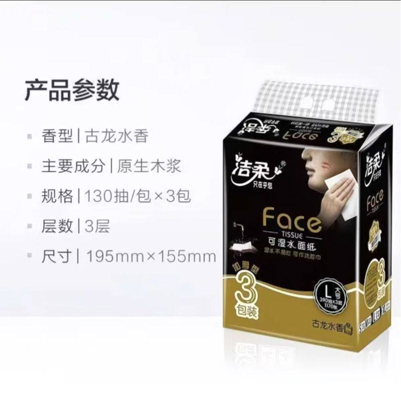 洁柔大号抽纸古龙水香味纸巾3层130抽可湿水面巾纸家用餐巾纸正品