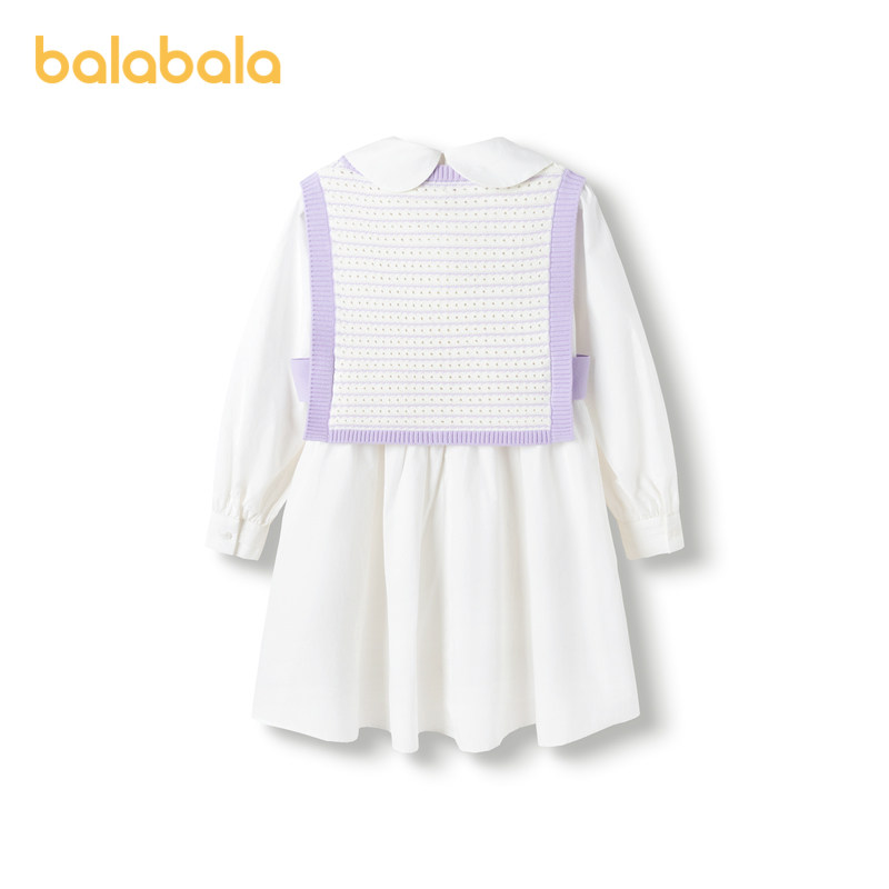 巴拉巴拉童装儿童连衣裙针织拼接女童春秋装学院娃娃领裙子套装潮