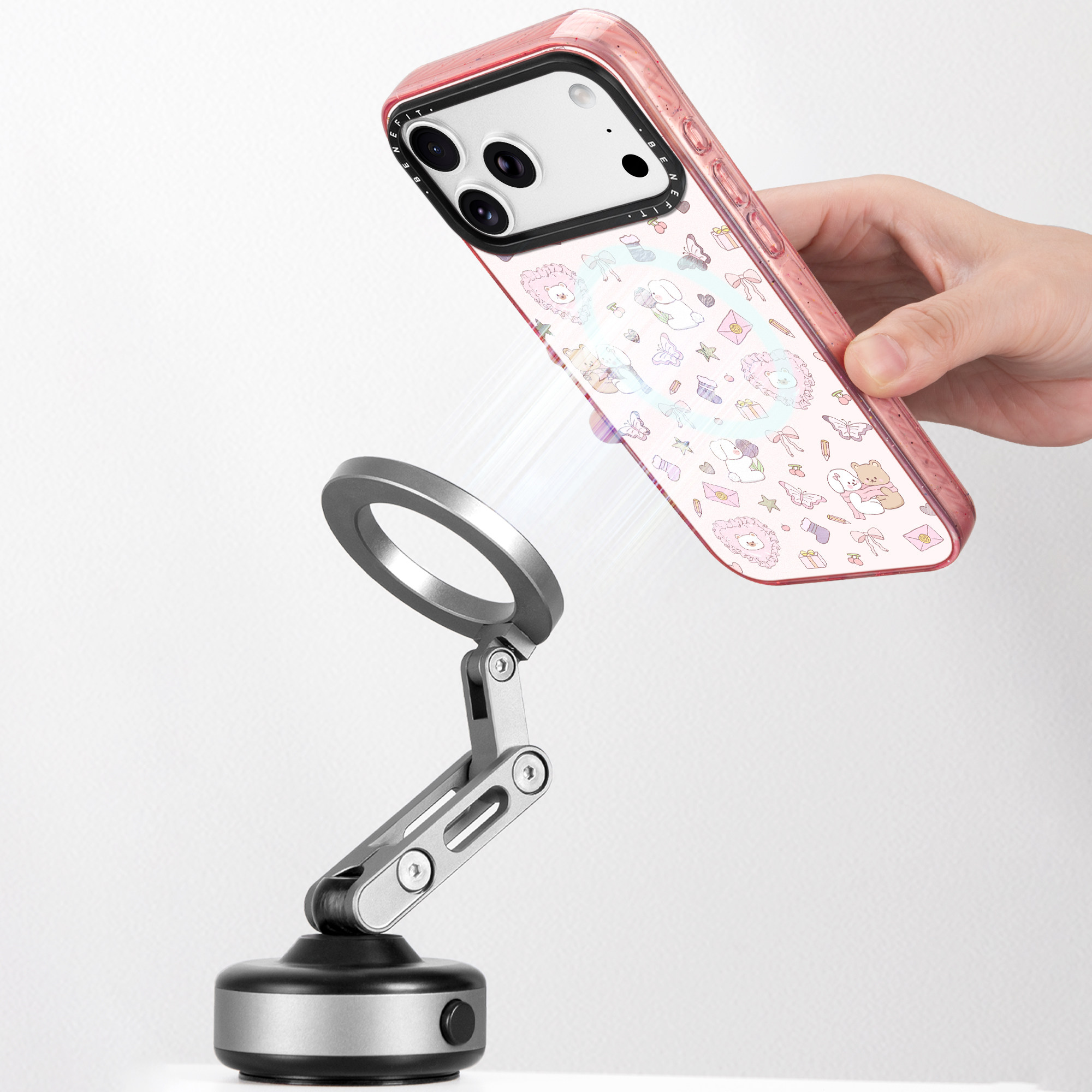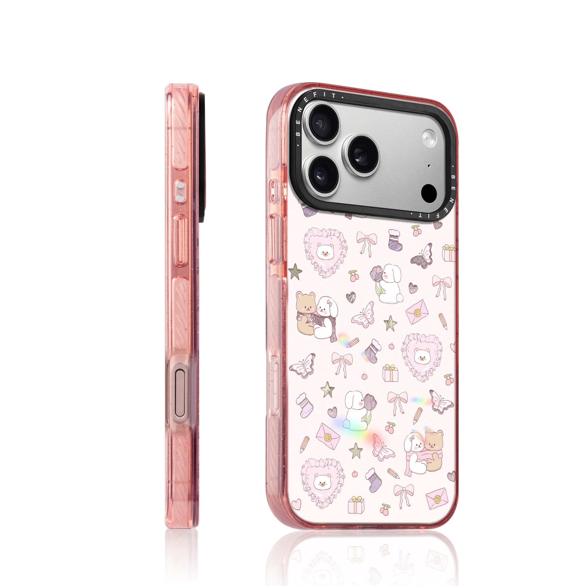 benefit日韩ins粉色小动物适用于iphone17promax苹果16PRO晶盾磁吸手机壳15新款13套14冰川纹12防摔彩色边框