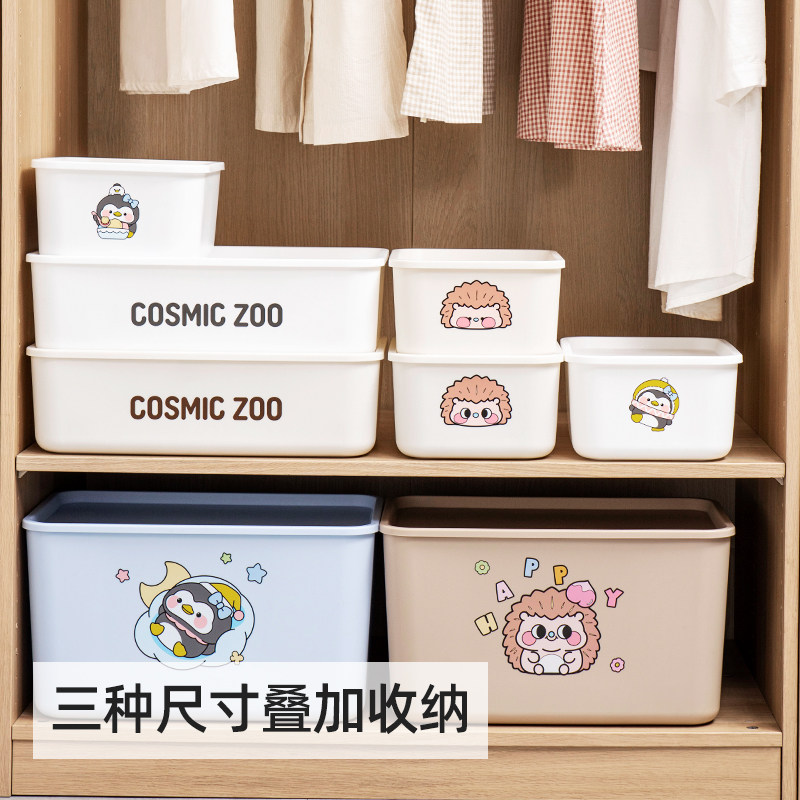 爱丽思桌面卡通儿童萌物收纳盒化妆品储物日式带盖零食杂物整理箱