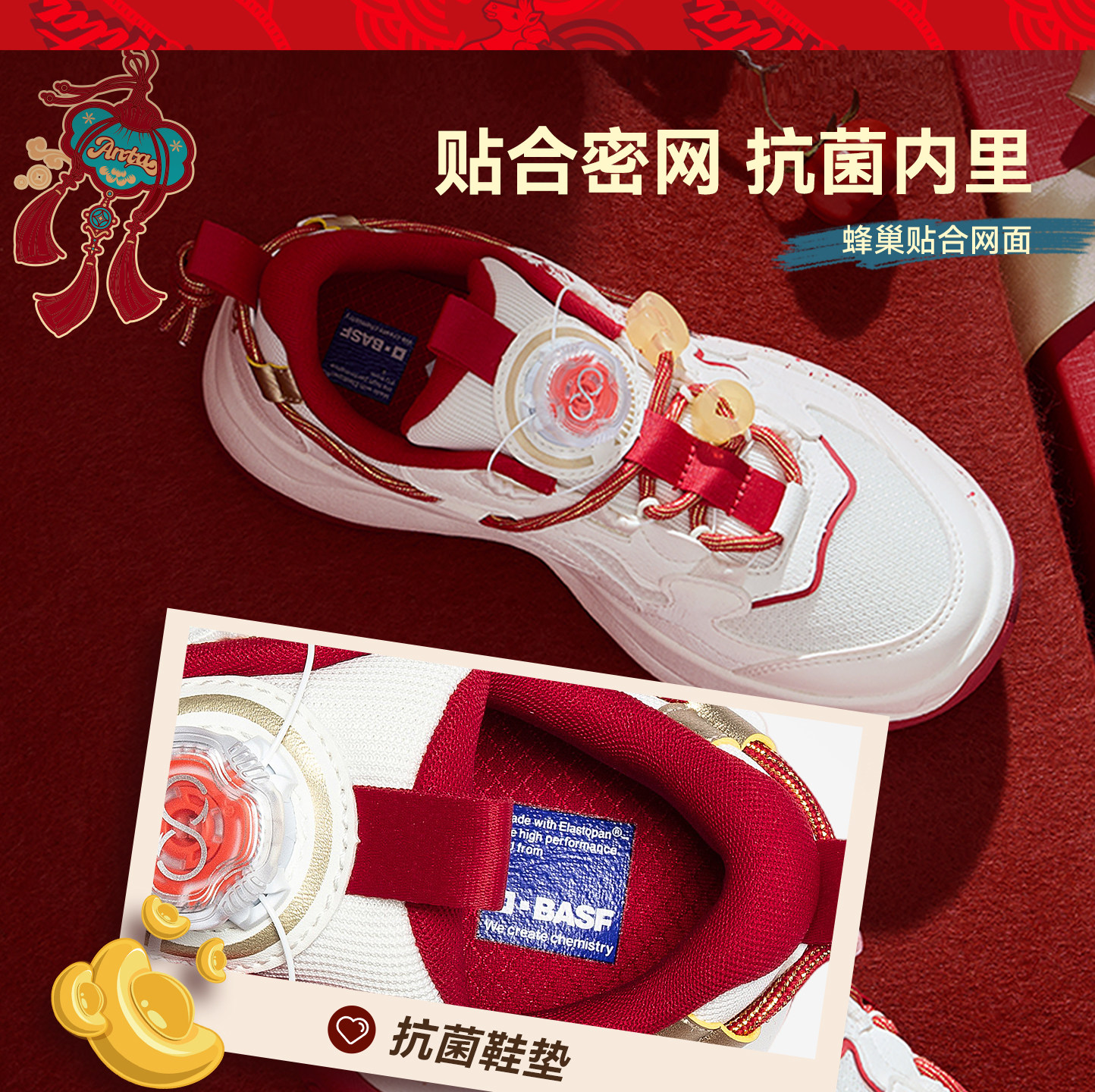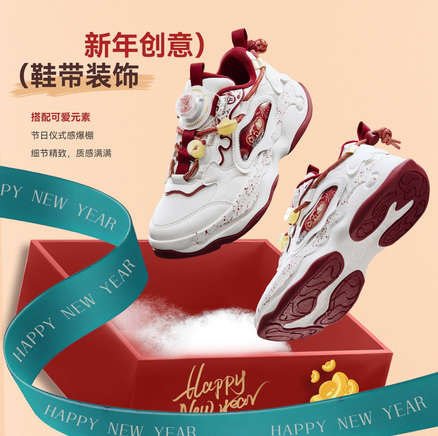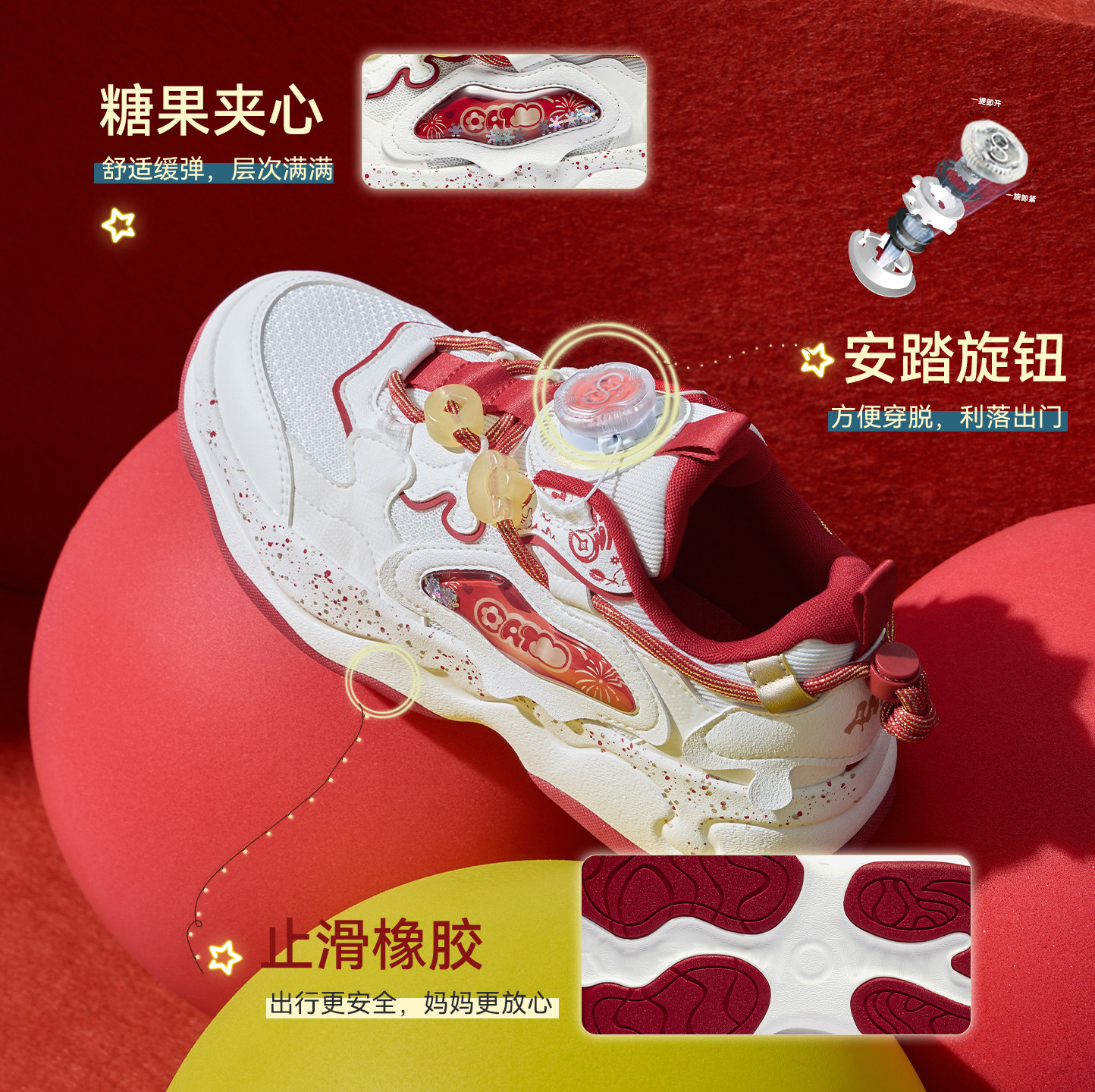 川流2|鸿星尔克童鞋男童红色秋冬运动鞋儿童旋钮新年鞋大童休闲鞋