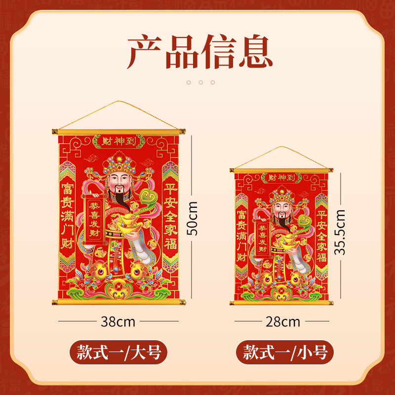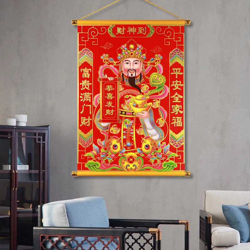 新款植绒财神客厅店铺装饰画五路财神爷挂画烫金工艺商铺招财玄关