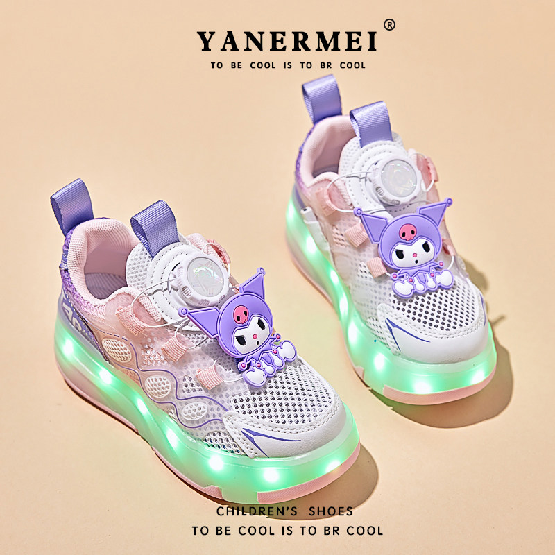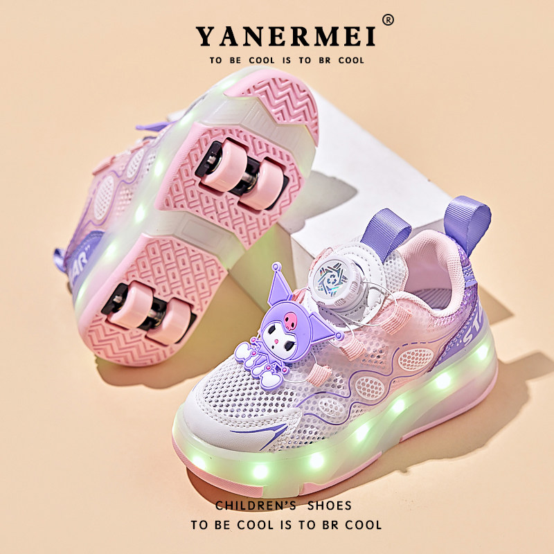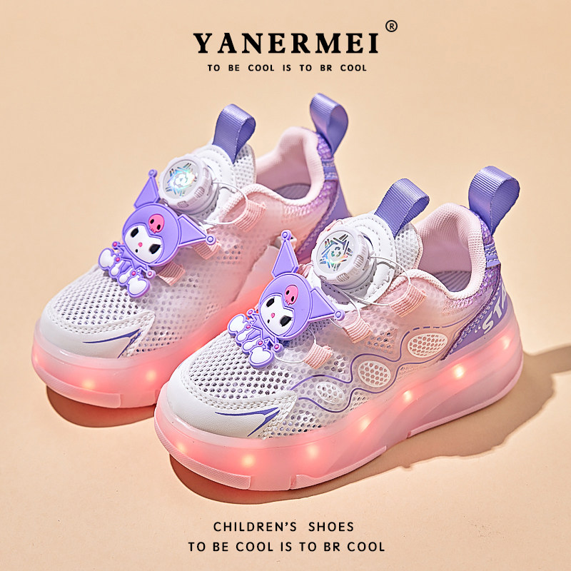 库洛米暴走鞋女童2026新款女孩闪灯发光鞋儿童旋转纽扣滑轮溜冰鞋