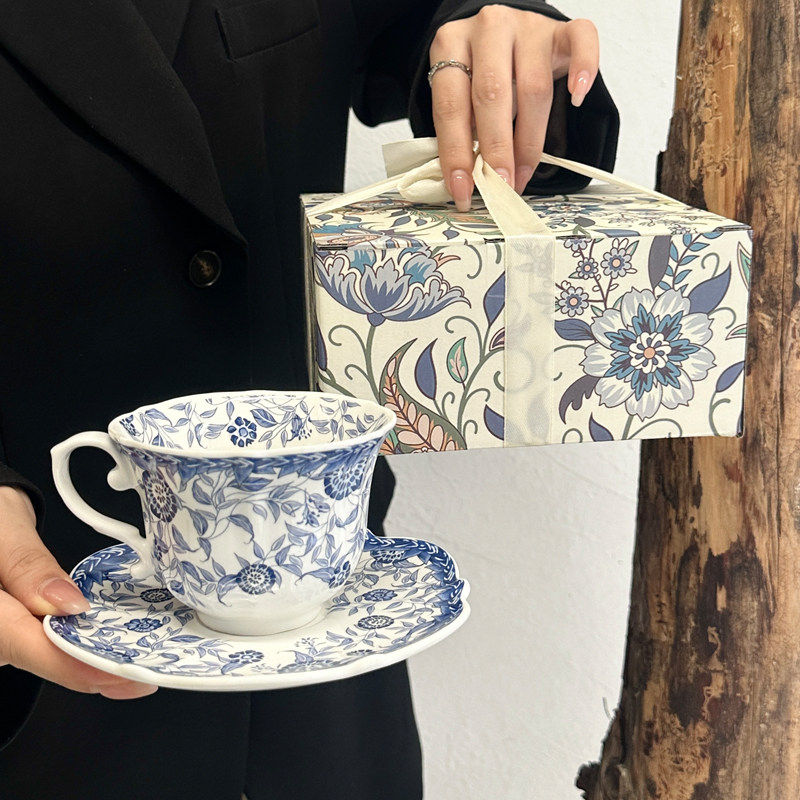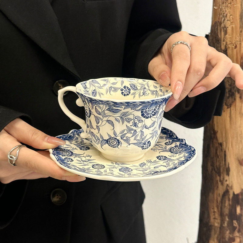 中古风青花陶瓷咖啡杯碟精致复古下午茶马克杯女生伴手礼生日礼物