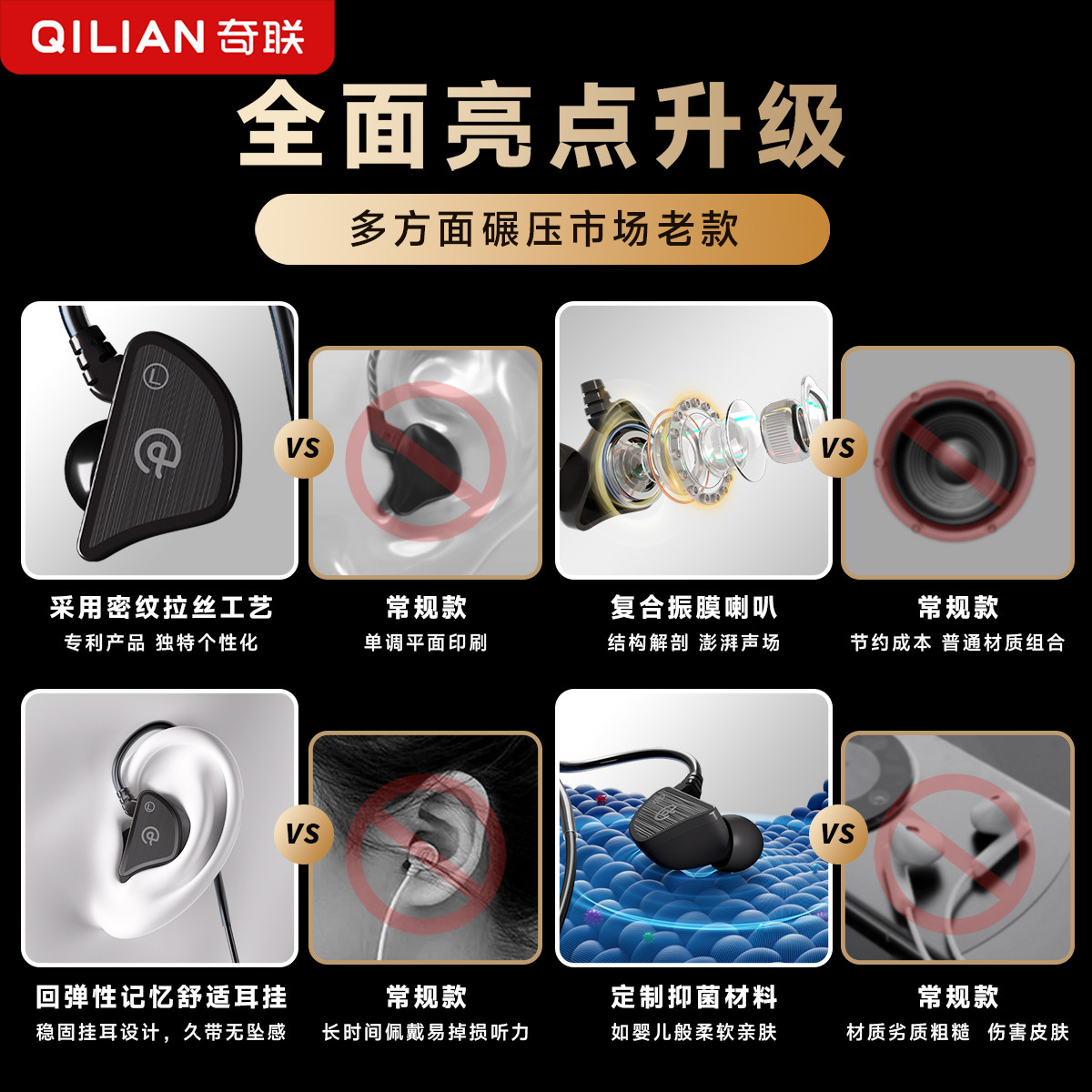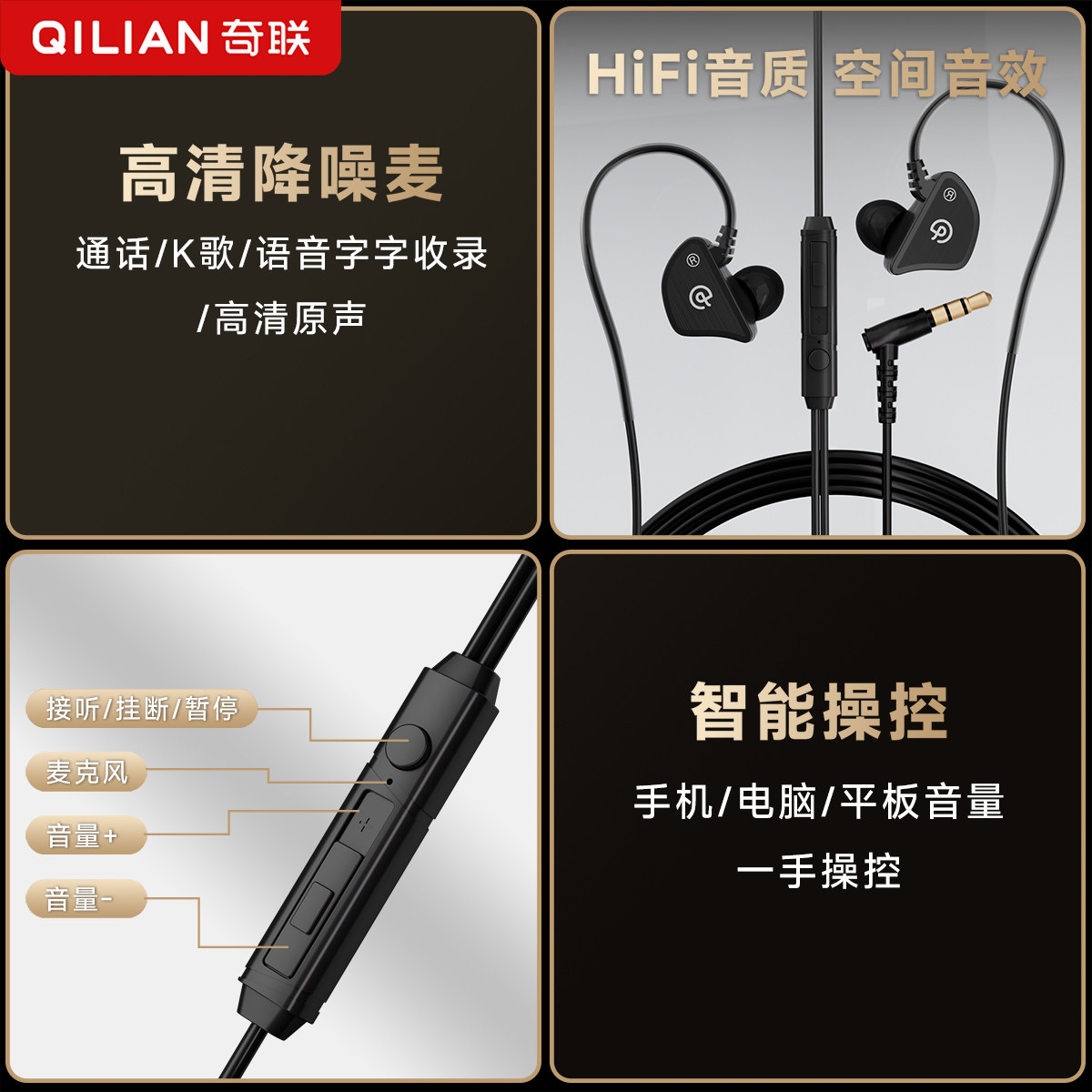 奇联Q3入耳式耳机跑步手机通用挂耳带运动有线带麦耳塞圆孔高音质