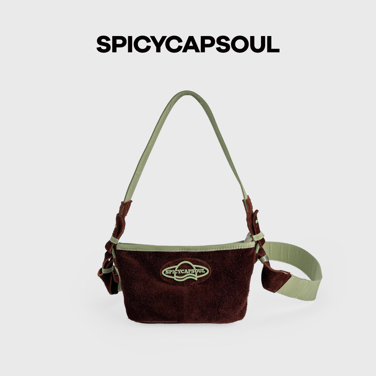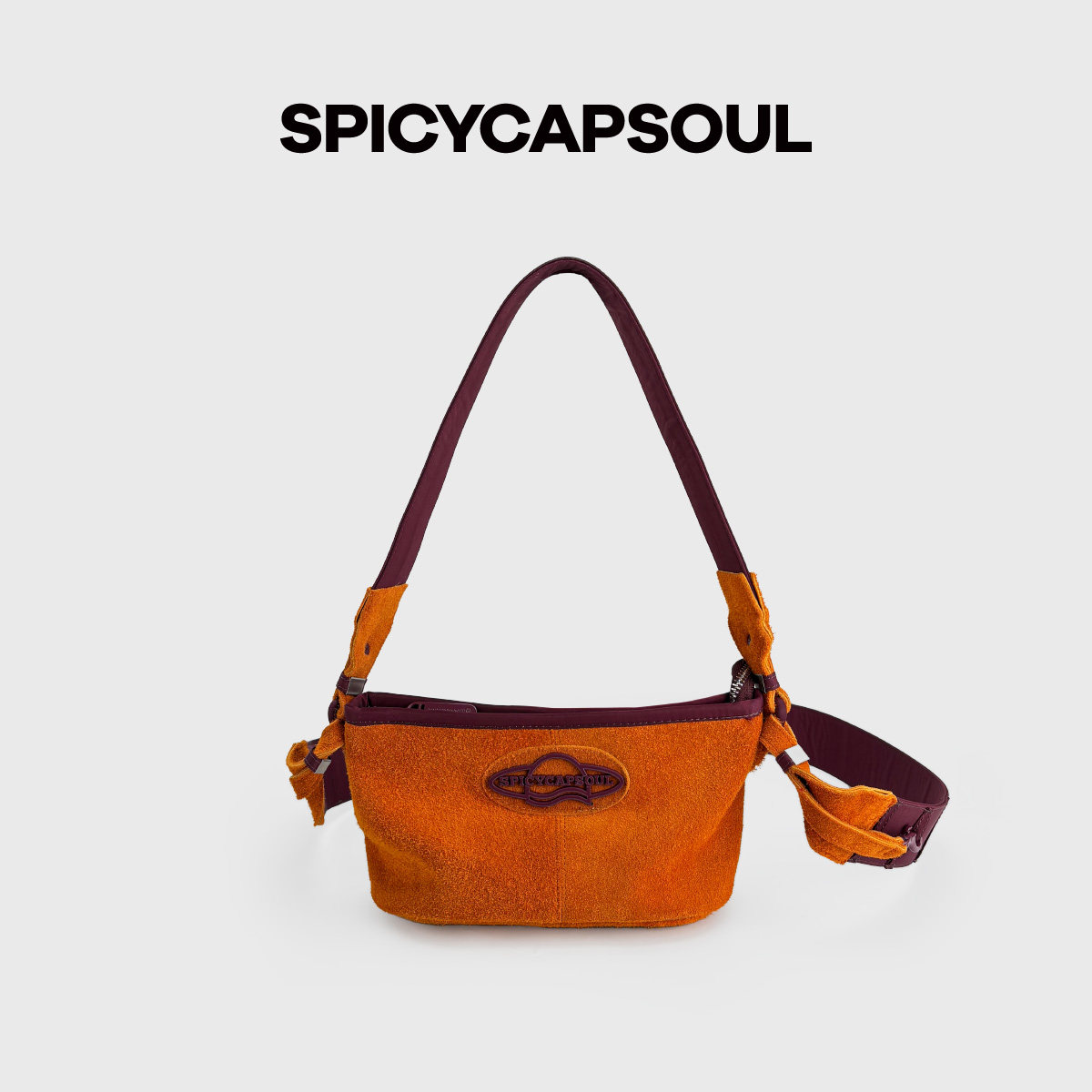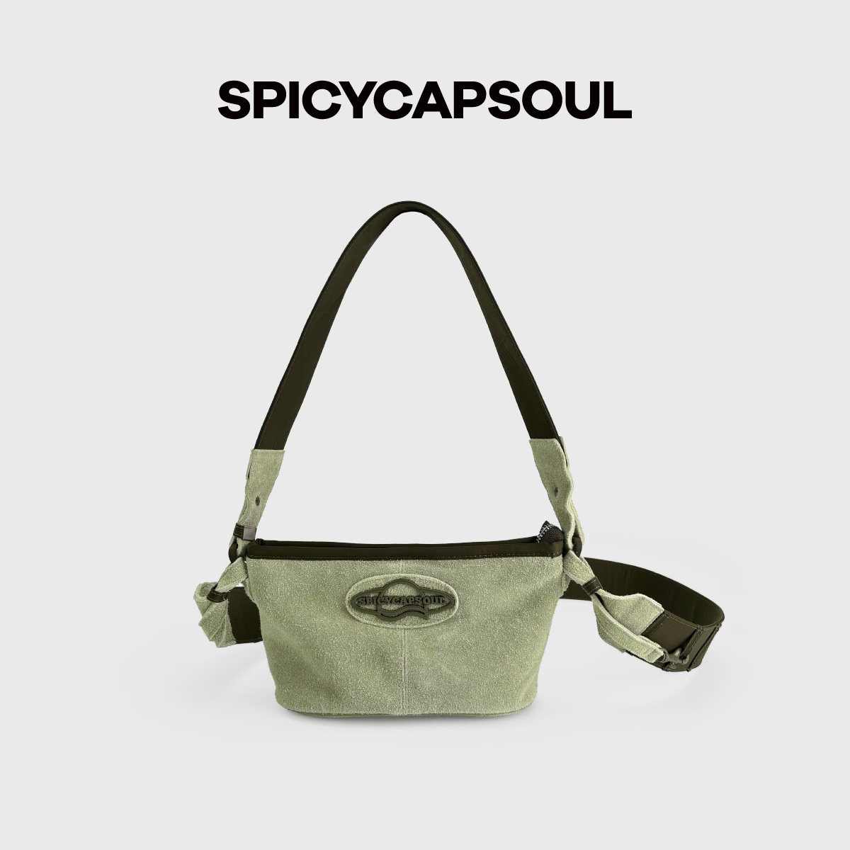 【罐头】SpicyCapSoul原创小众头层翻绒牛皮配尼龙腋下单肩斜挎包