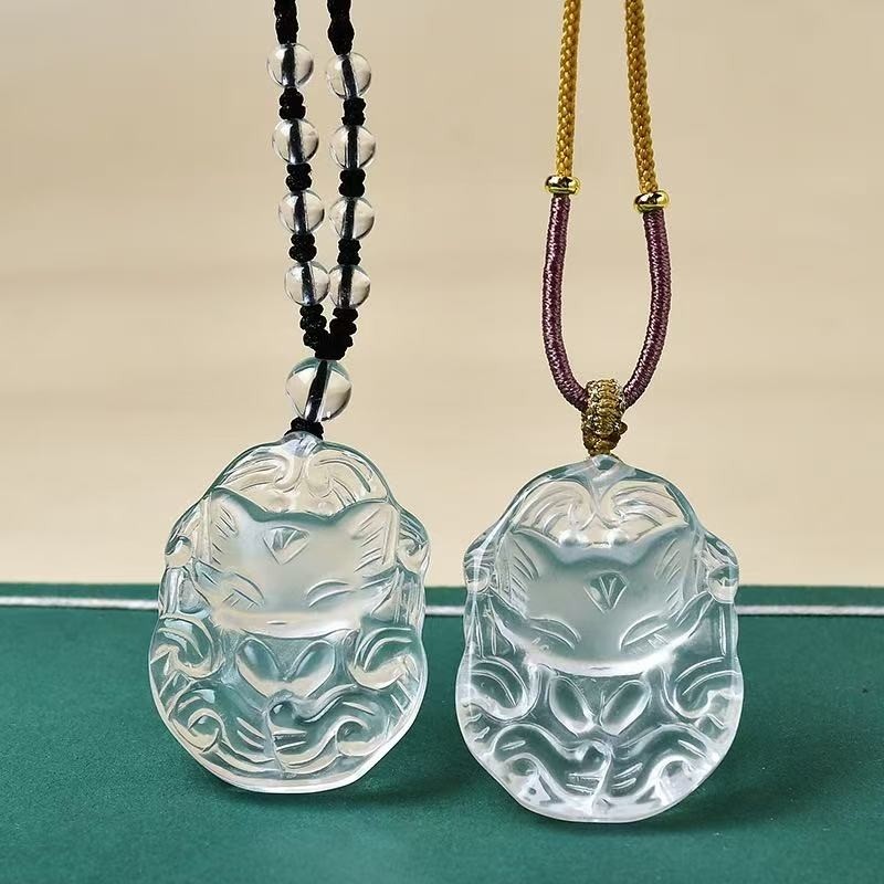 VZZS可爱天然白水晶顿顿狐新款水晶净体公主狐配精美珠链吊坠项链