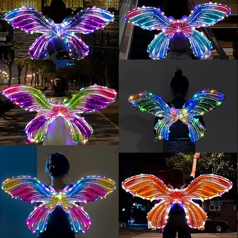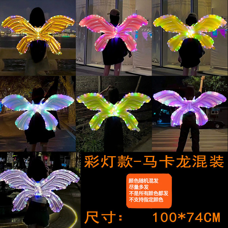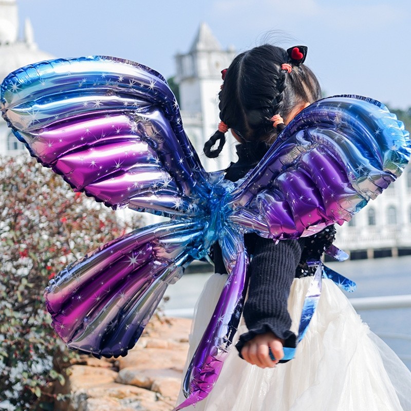 发光天使气球充气儿童派对网红生日装饰户外拍照道具翅膀铝膜金色