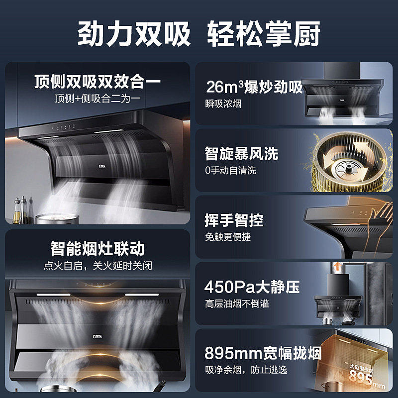 以旧换新万家乐AK6/K3大吸力抽吸油烟机家用厨房顶侧双吸免拆洗