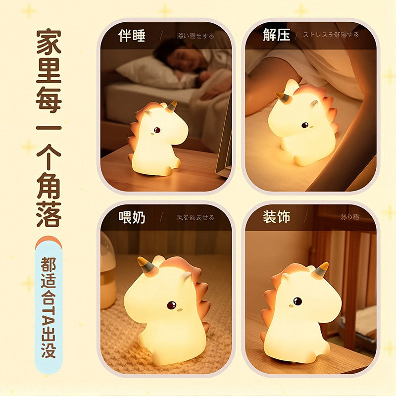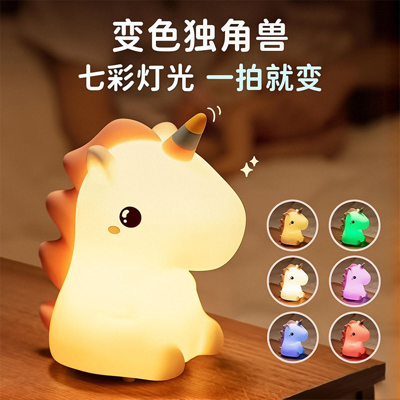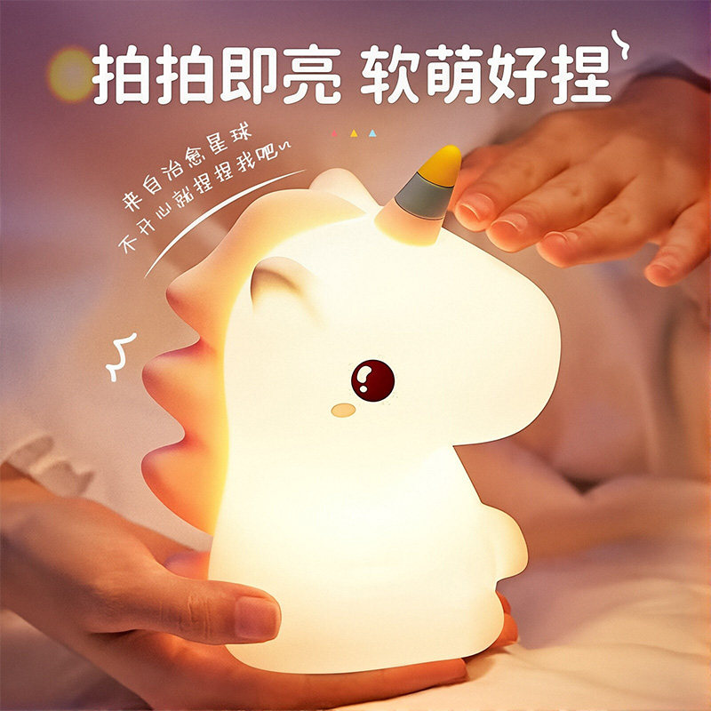 独角兽卡通可爱柔光拍拍灯婴儿伴睡高颜值卧室摆件台灯硅胶小夜灯