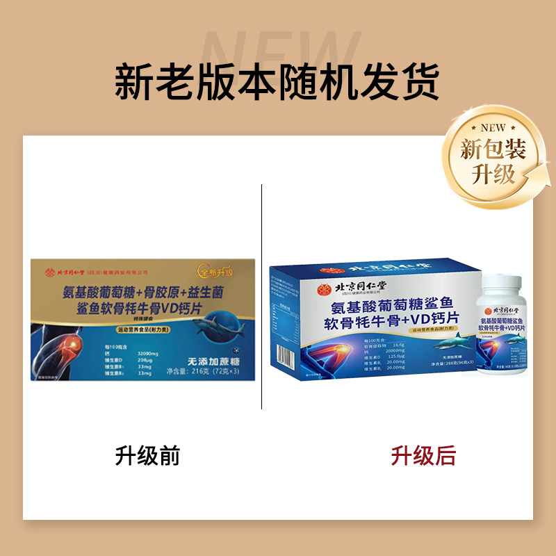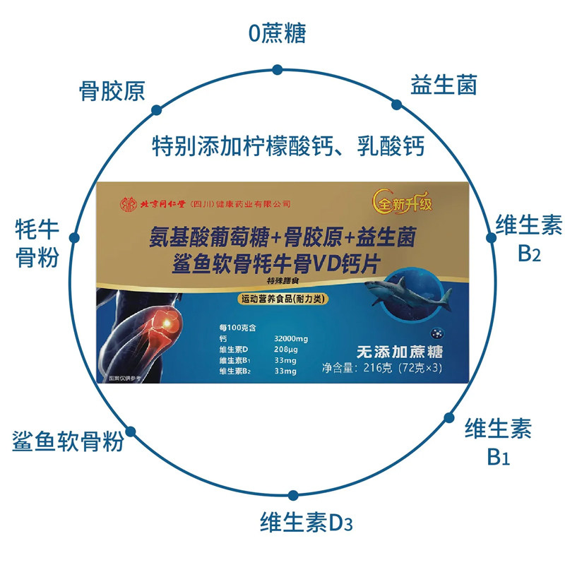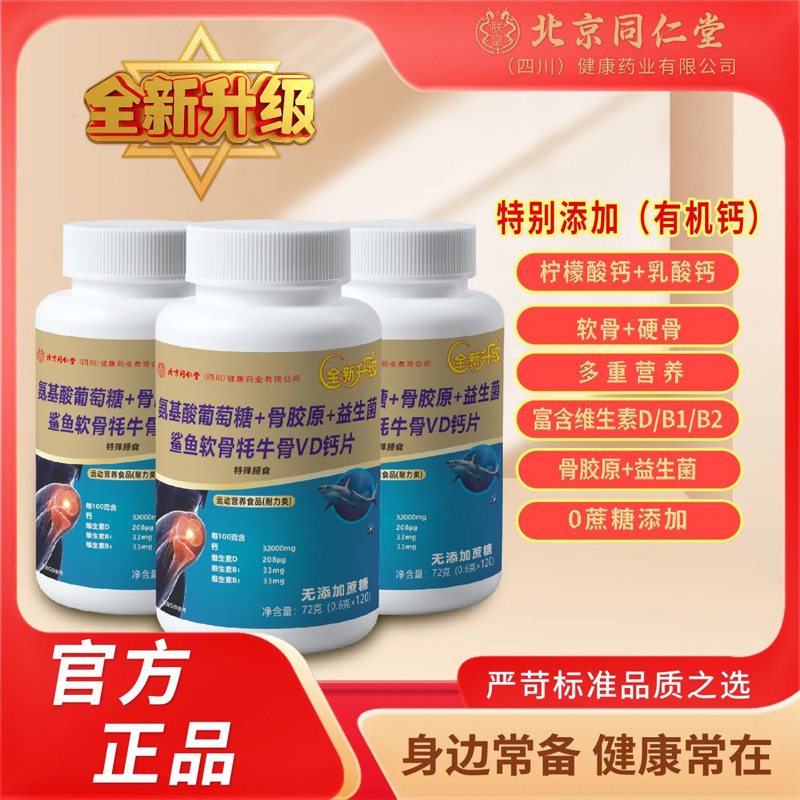 北京同仁堂氨基酸葡萄糖骨胶原软骨牦牛骨VD钙片1YZ氨糖鲨鱼