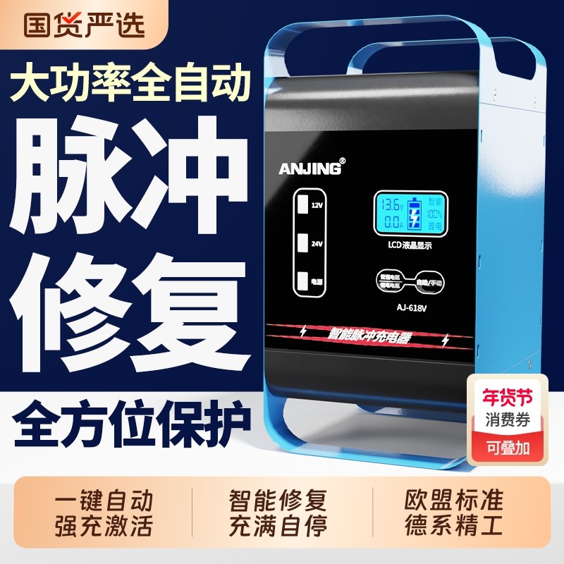 汽车电瓶充电器12v24v智能摩托车大容量全自动大功率蓄电池充电机