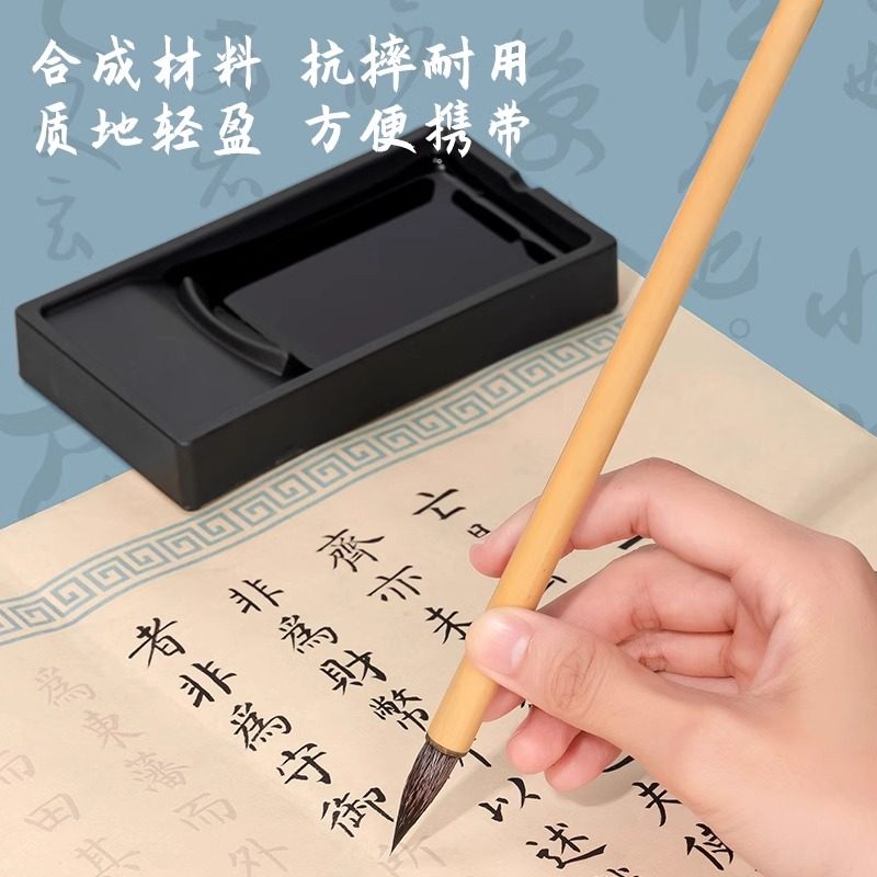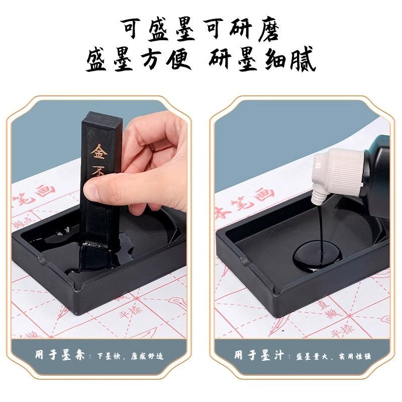 得力砚台书法专用砚毛笔墨盒墨盘可磨墨墨碟墨蝶火锅原石天然石砚儿童墨条墨块学生墨汁小罗纹硕台石研墨石头
