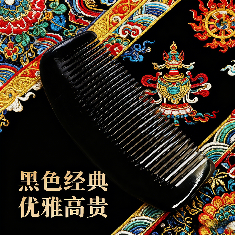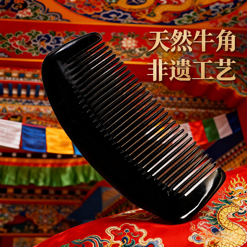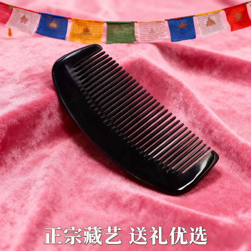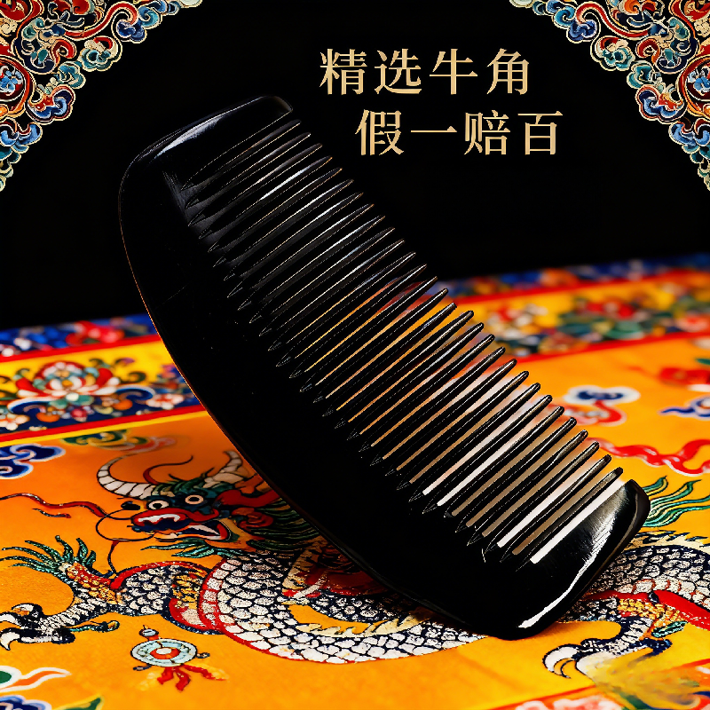 天然黑牦牛角月牙梳子便携小随身家用防静电头皮按摩梳经络养发