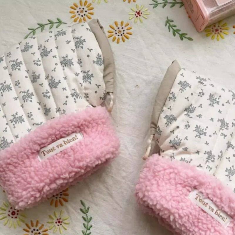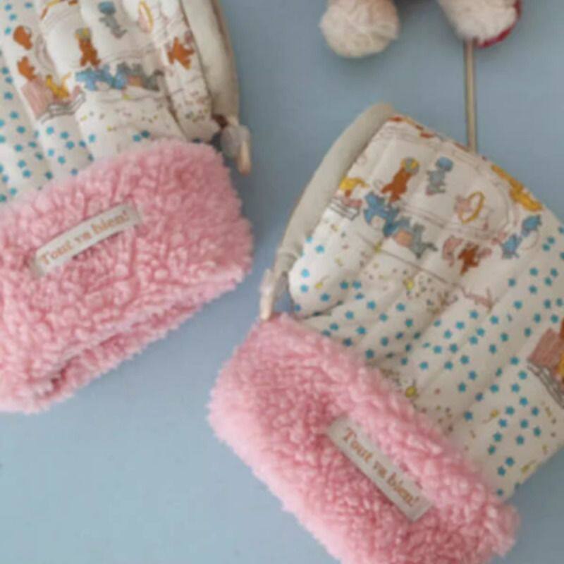 韩国ins儿童滑板车手套碎花保暖手套男女童平衡车骑行加绒手套