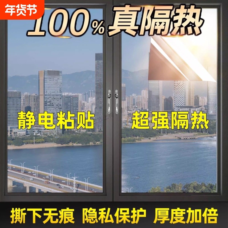 玻璃窗户防晒隔热贴膜阳台阳光房防窥防走光遮光遮阳单向透视贴纸