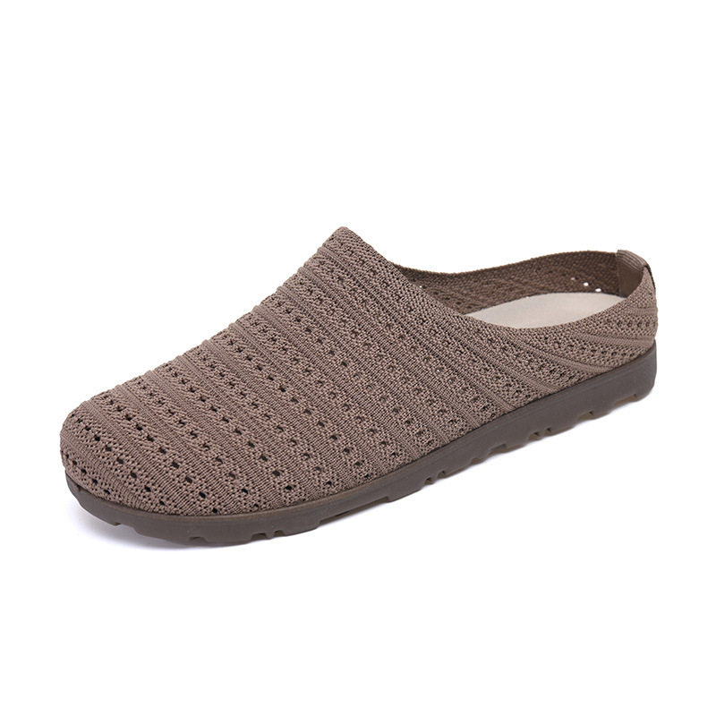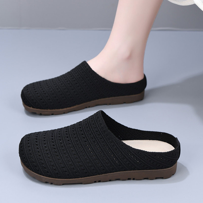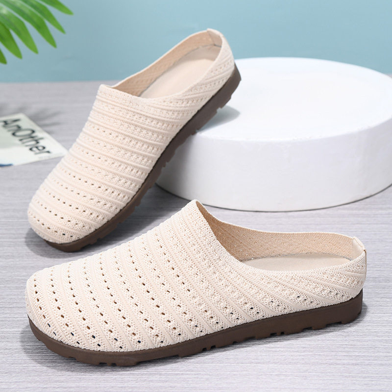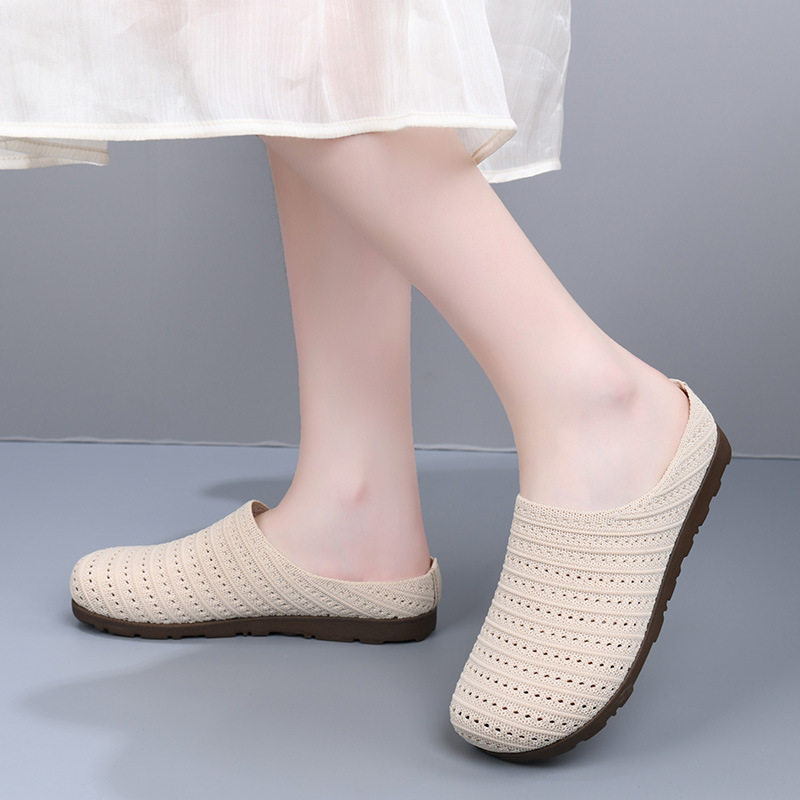夏季透气镂空针织半托网面鞋老北京布鞋女士室外一脚蹬妈妈休闲鞋