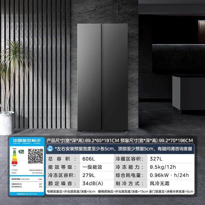 美的570+/606对开双开门两门大容量家用冰箱一级节能风冷无霜超薄