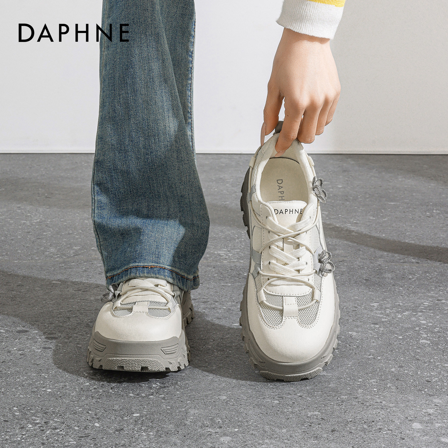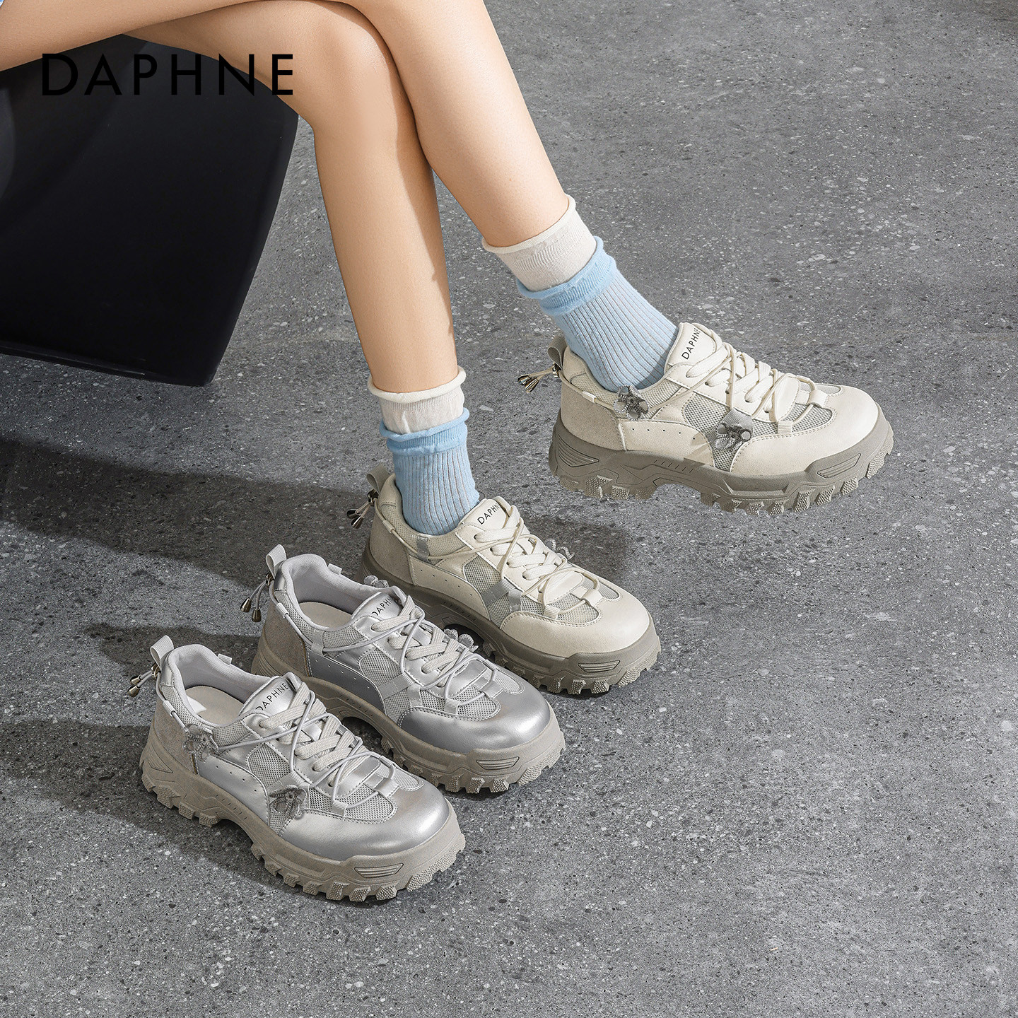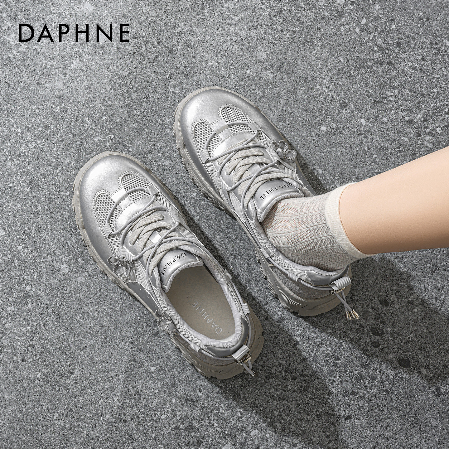 达芙妮银色厚底网状老爹鞋女款2026春季新款不累脚增高运动休闲鞋