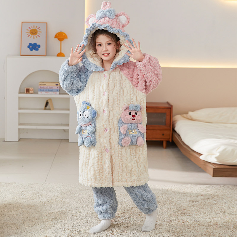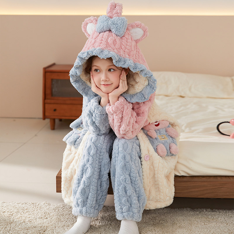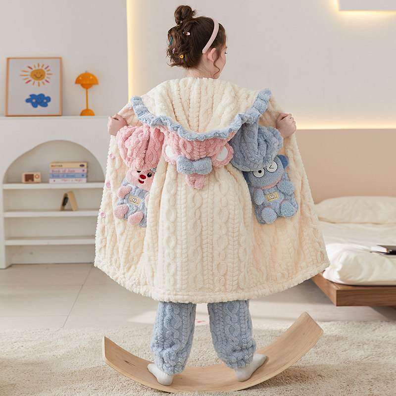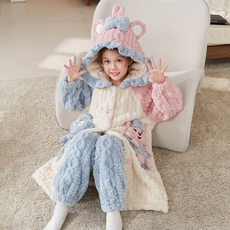 女童睡袍秋冬季珊瑚绒加厚儿童睡衣法兰绒女孩家居服冬款2025新款