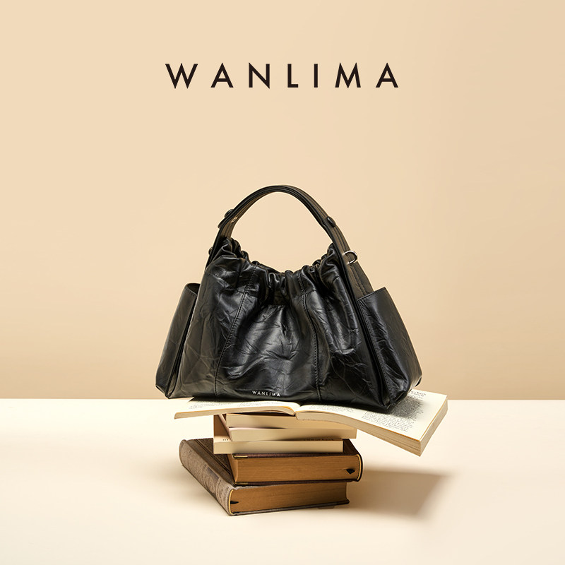 万里马手抓纹真皮云朵包包女士2026新款手提三角包超火上班小拎包