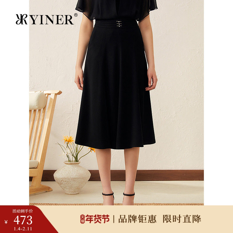YINER音儿专选2025春季新款法式伞摆小黑裙腰部链条装饰半身裙