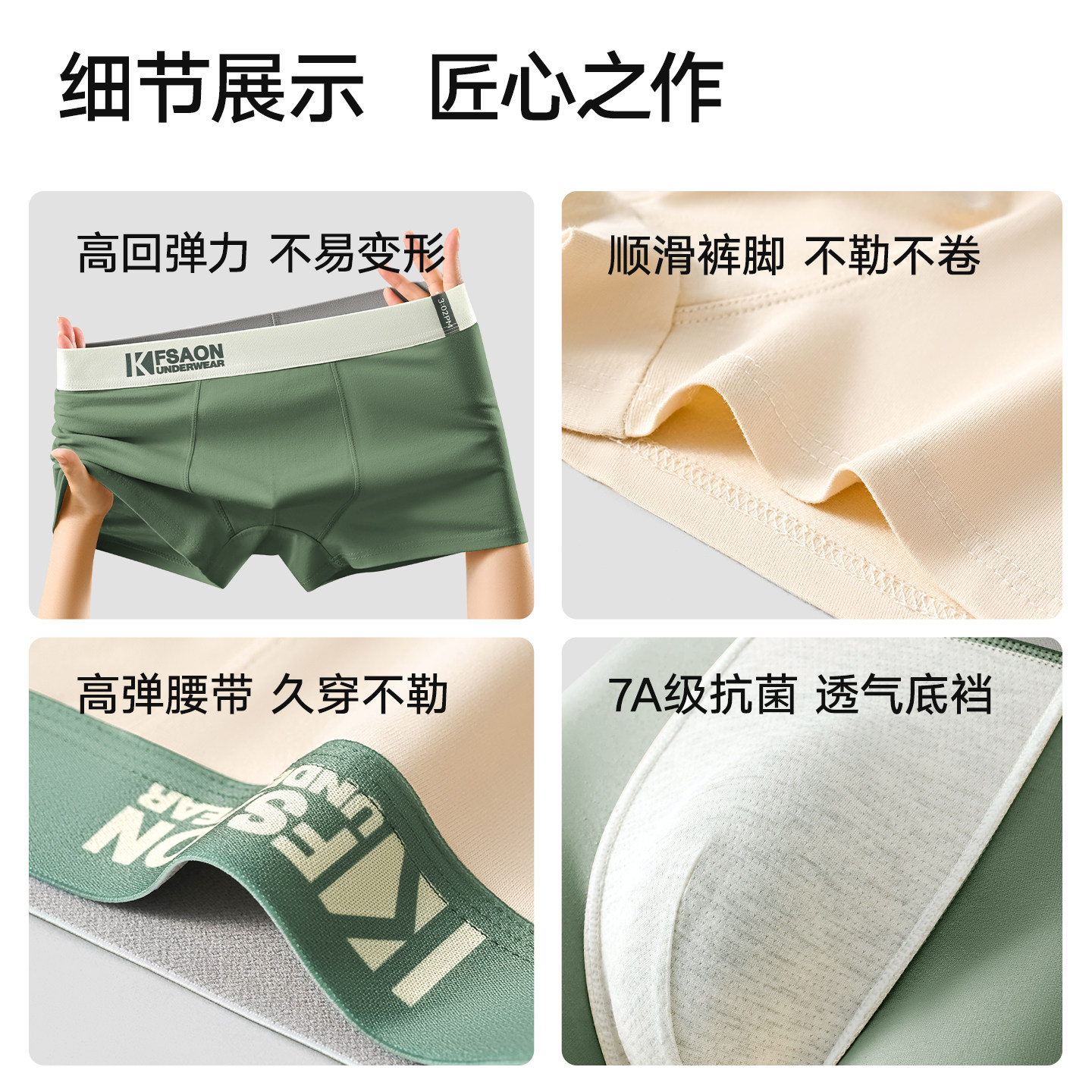 安比斯男士内裤男纯棉7A级抑菌中腰透气四角裤男生短裤衩男式裤头