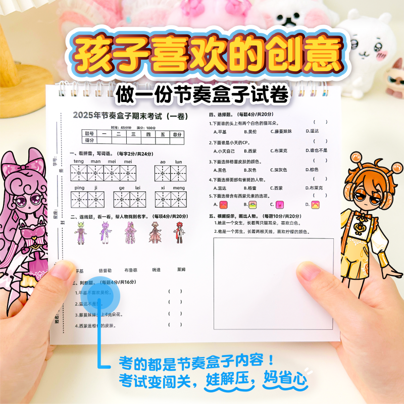 萌崽新款学霸学渣果冻贴纸安静书儿童免裁剪手工粘贴DIY女孩趣味玩具