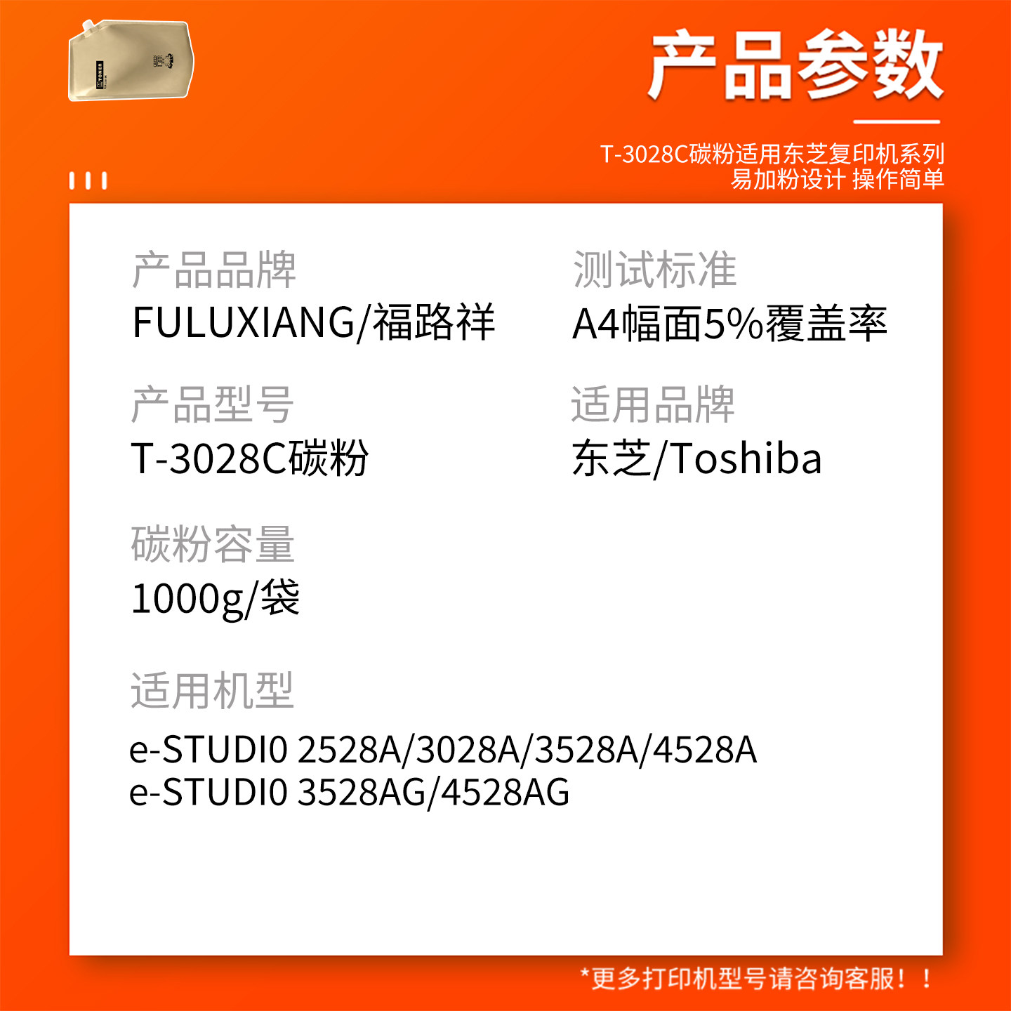 适用东芝2528A墨粉e-studio 3028A 3528A 复印机机粉盒添加粉3528A 3528AG 4528A 4528AG碳粉T-3028墨盒散粉