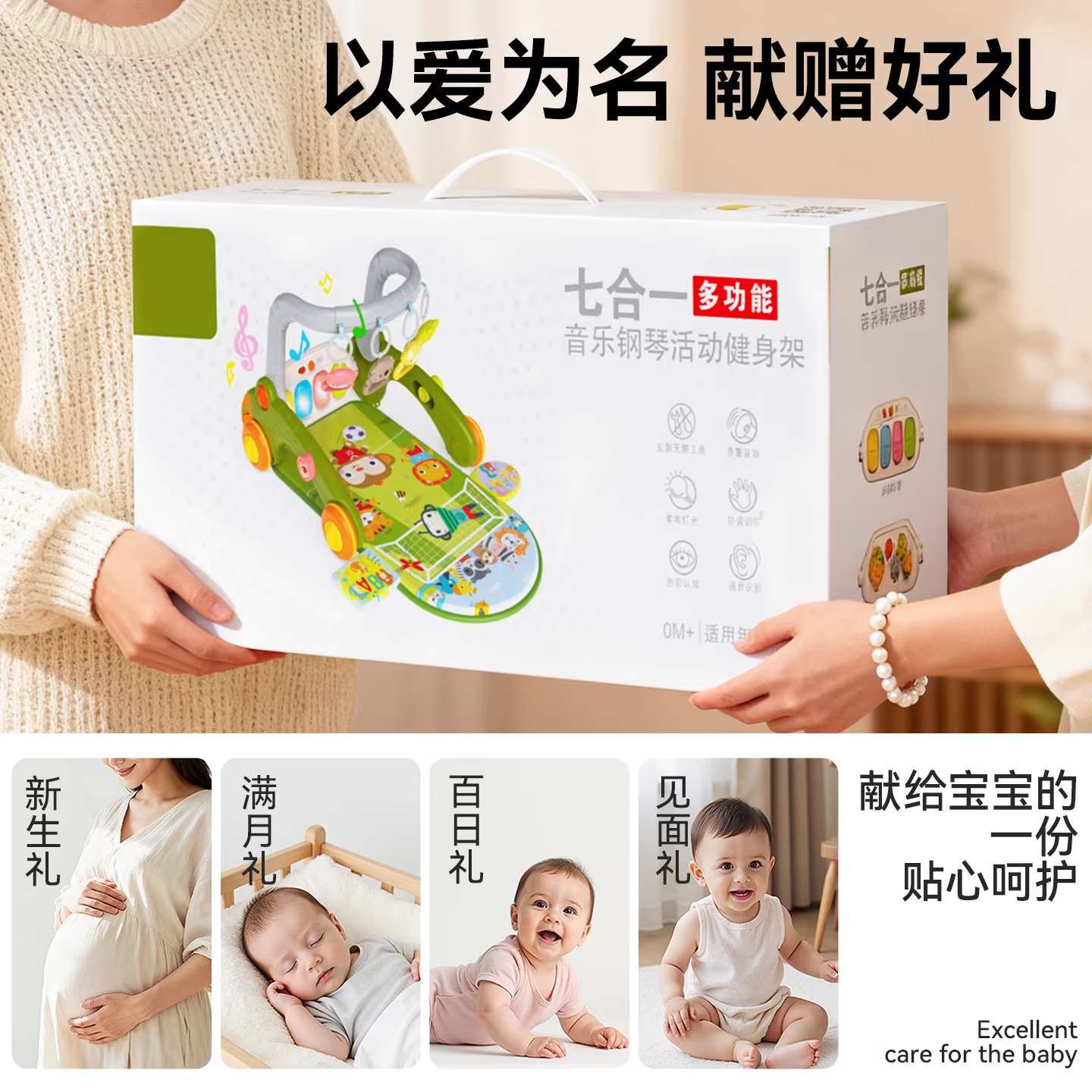 婴幼儿健身架玩具0到3个月消耗体力学步车礼物七合一多种玩法礼盒