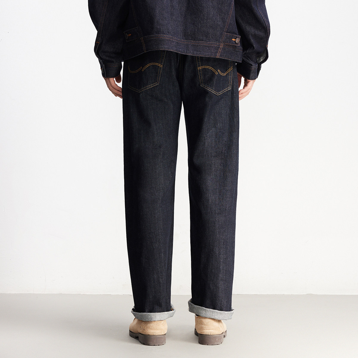 宽松直筒版型,纽扣腰头,YKK拉链门襟,