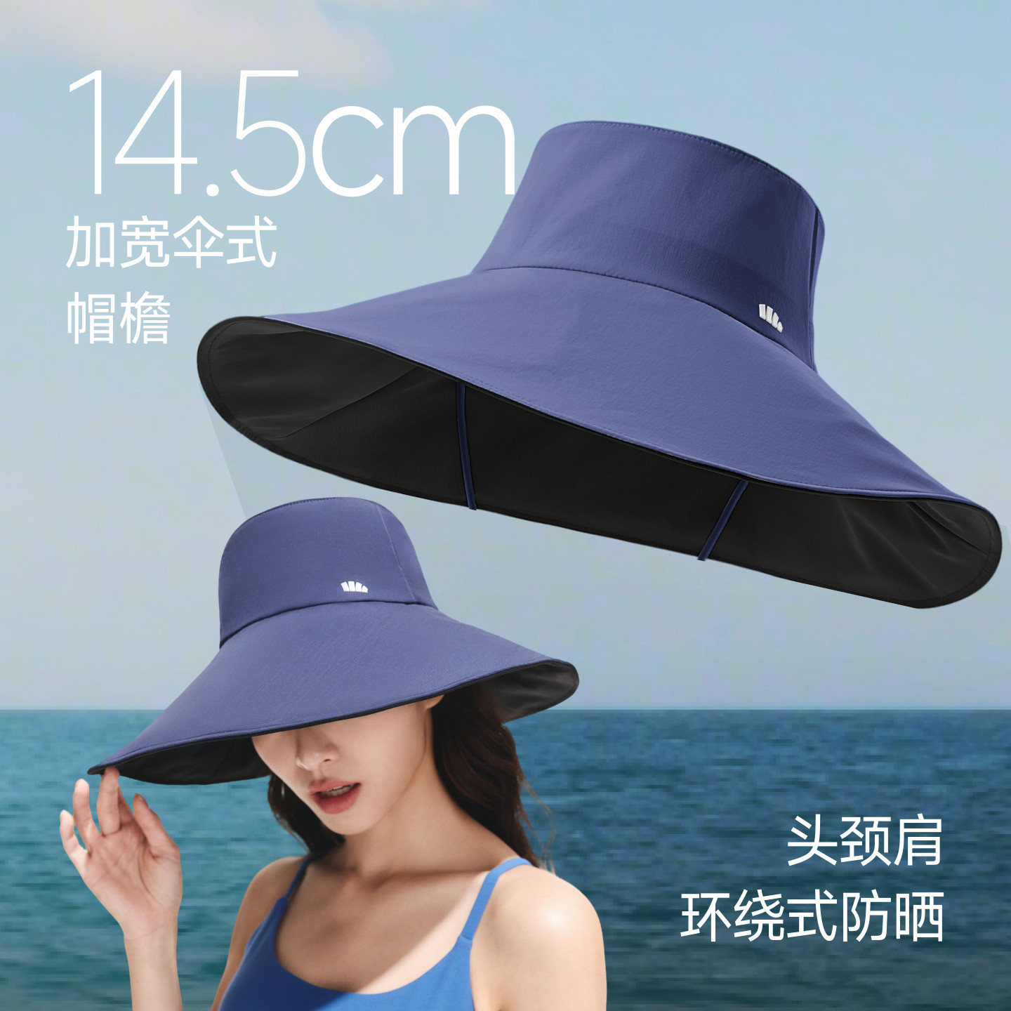 防晒帽女夏季防紫外线贝壳遮阳帽空顶太阳帽子大檐夏天儿童可折叠