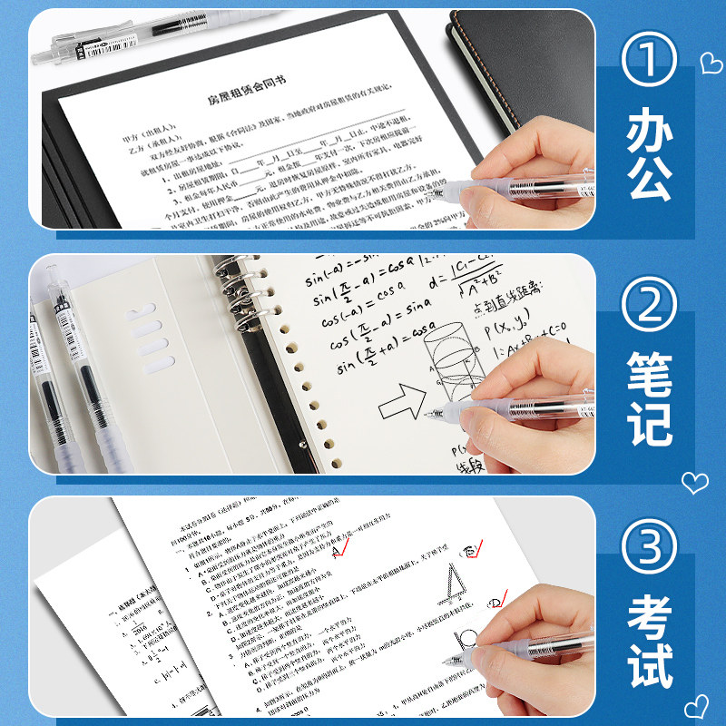ST刷题笔高颜值按动中性笔圆珠笔黑色水笔小学生专用考试0.5速干碳素笔水性黑笔按压式做笔记签字笔非按斤卖