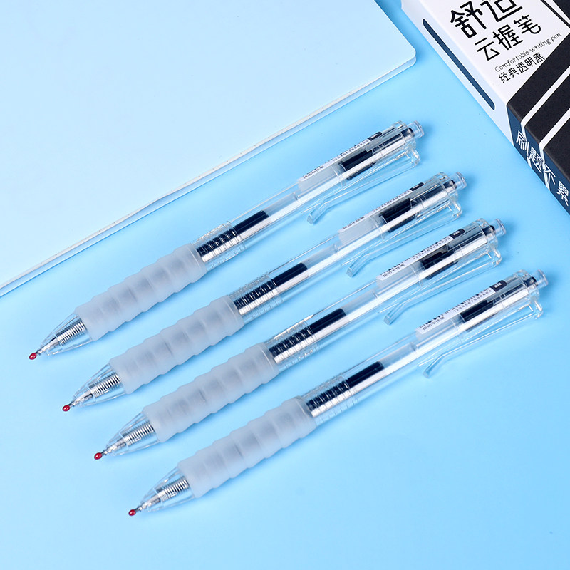 云握笔按动中性笔学生专用舒适黑色刷题笔水性笔圆珠笔按动笔芯水笔初中生速干黑笔透明按动笔办公st笔芯红色