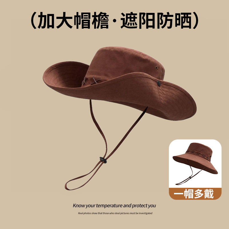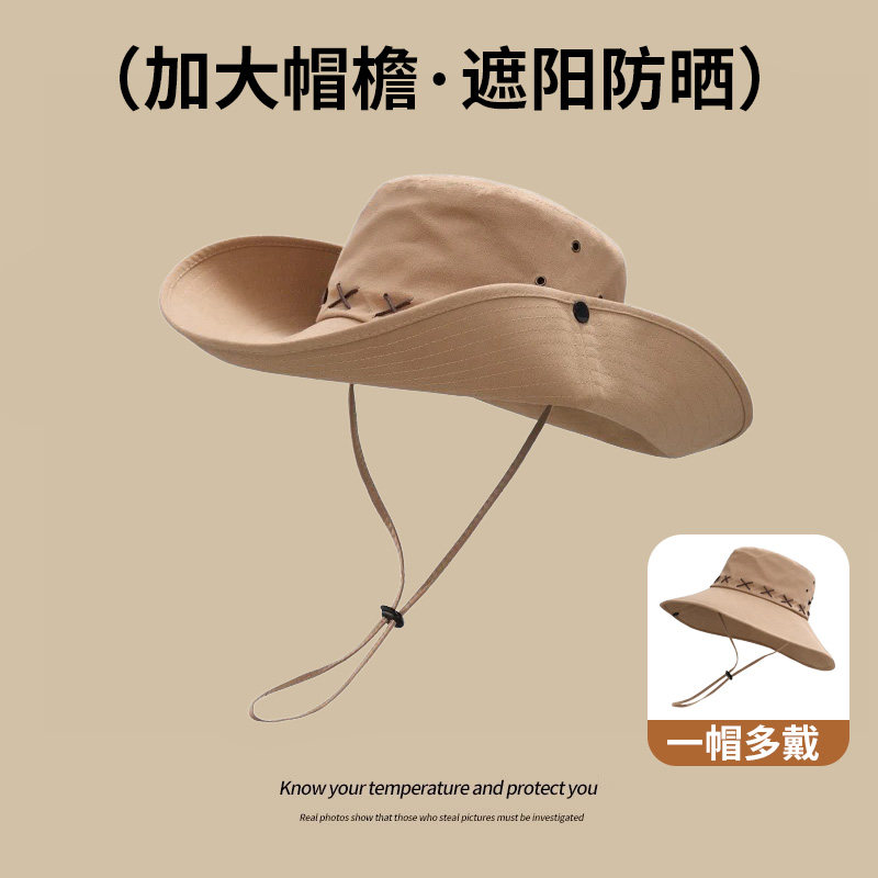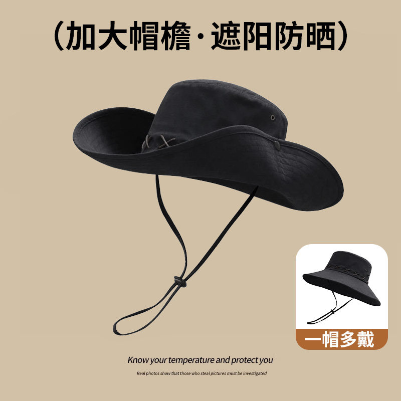 西部牛仔帽男渔夫帽女爬山沙漠防晒帽户外露营遮阳帽子徒步登山帽