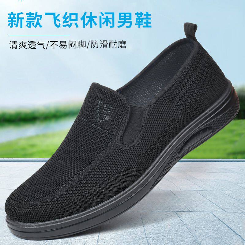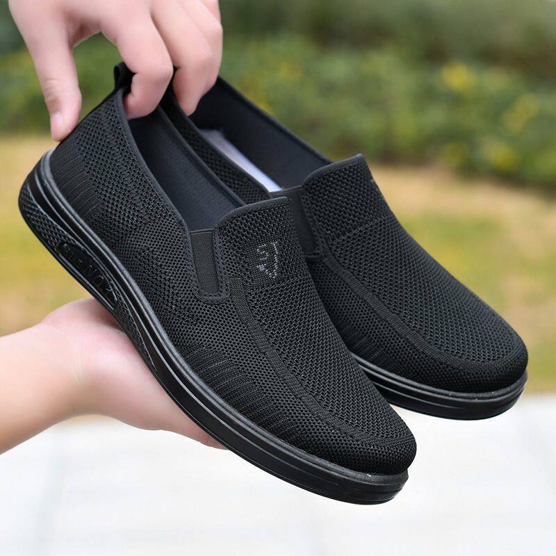 夏季老北京布鞋男士透气爸爸中老年软底懒人鞋舒适百搭一脚蹬网鞋