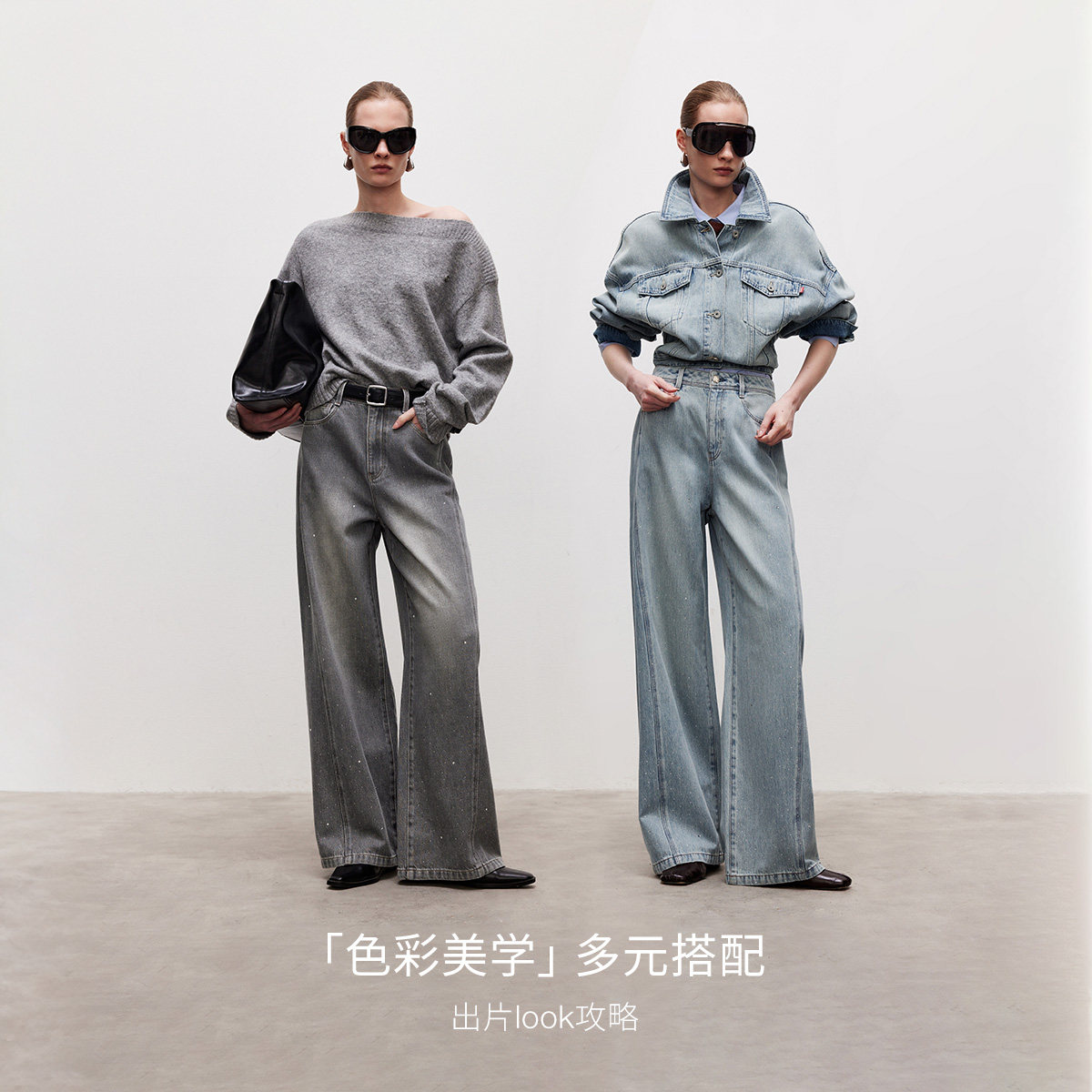 【满天星】ONLY2026春季新款闪耀水钻点缀设计高腰宽松直筒牛仔裤