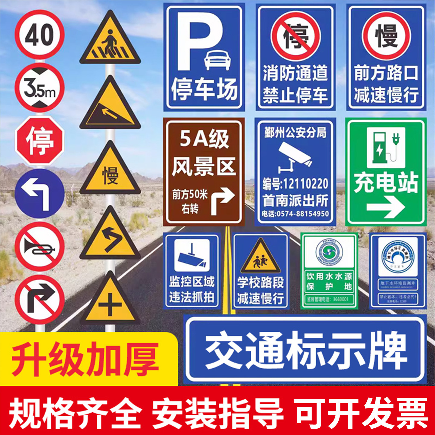 定制交通标志牌景区路牌指示牌立柱反光铝板路名牌限速广告标识牌