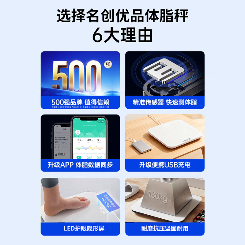 智能体脂秤充电电子称专业称重小型精准耐用人体体重秤家用测脂肪