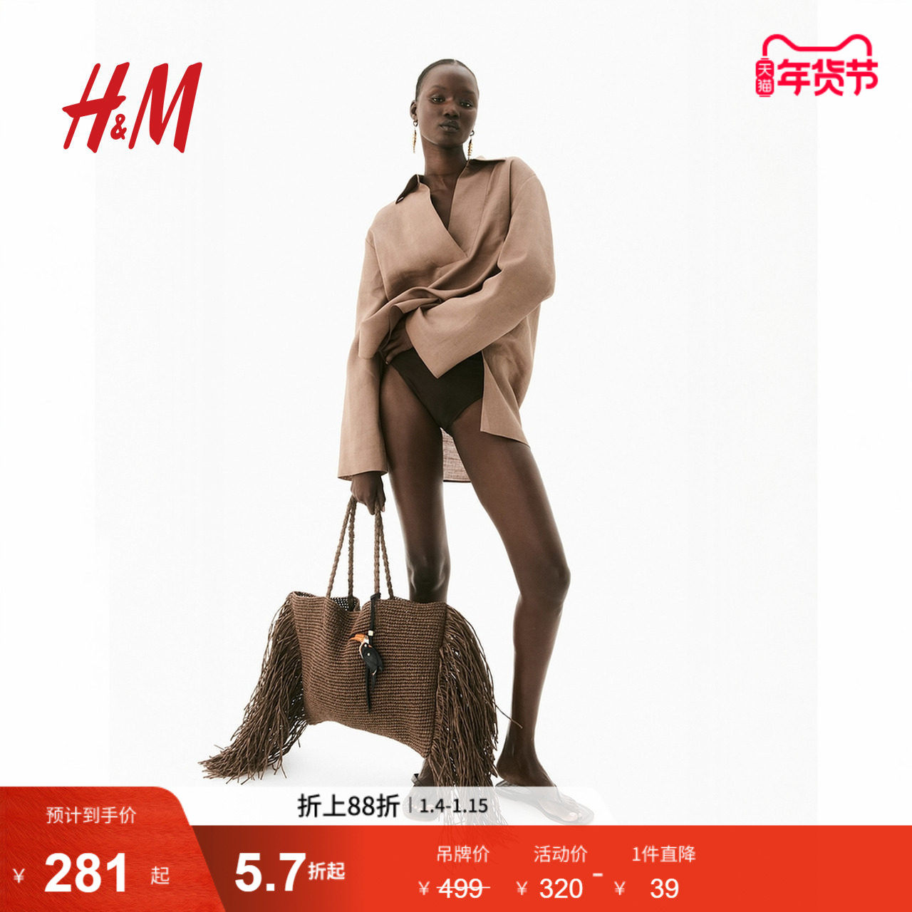 HM女装衬衫春季苎麻套头式衬衫1290678