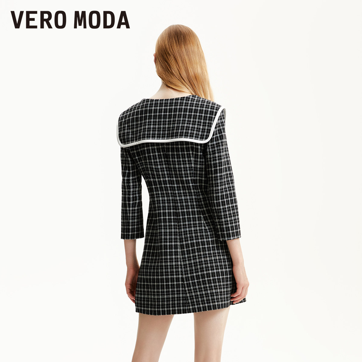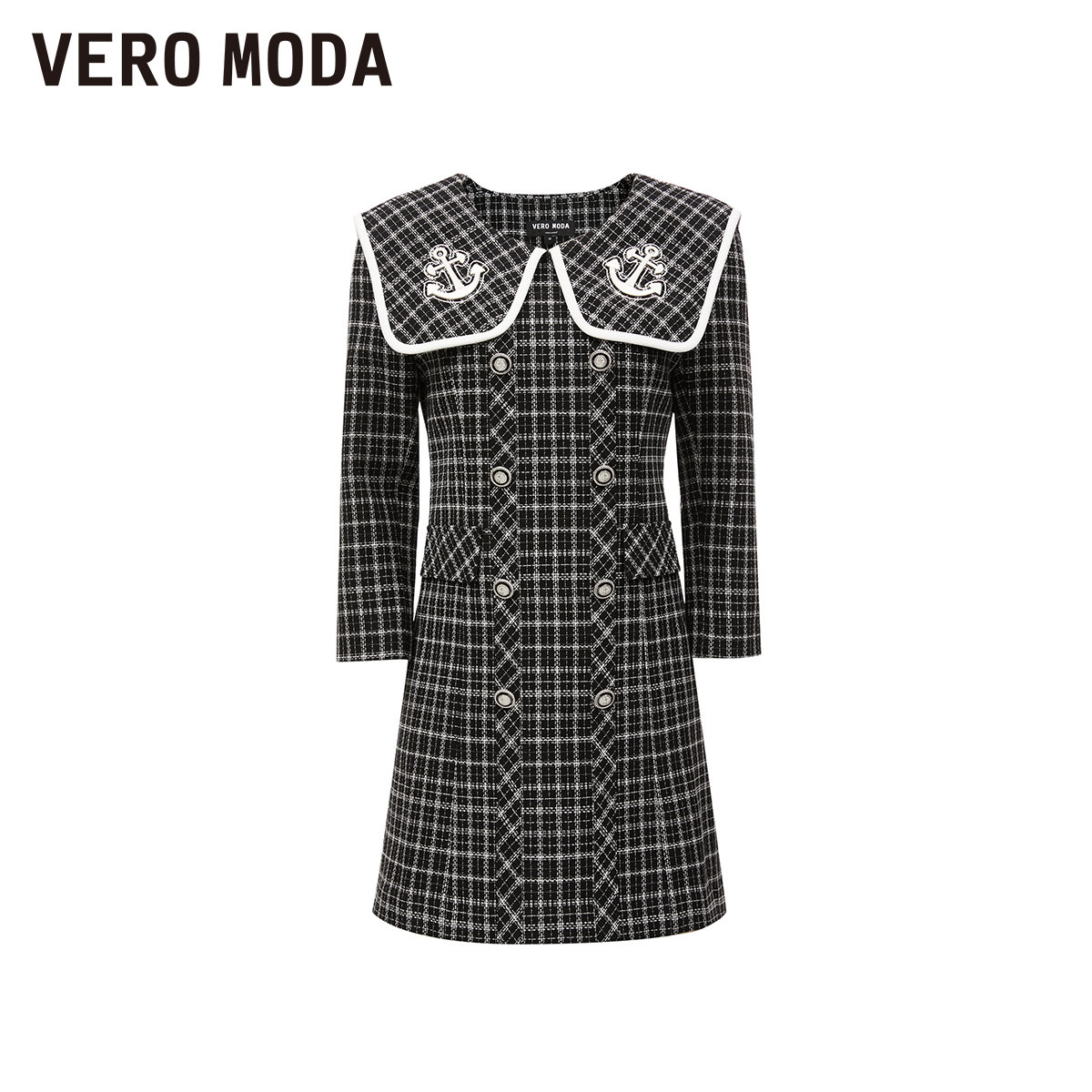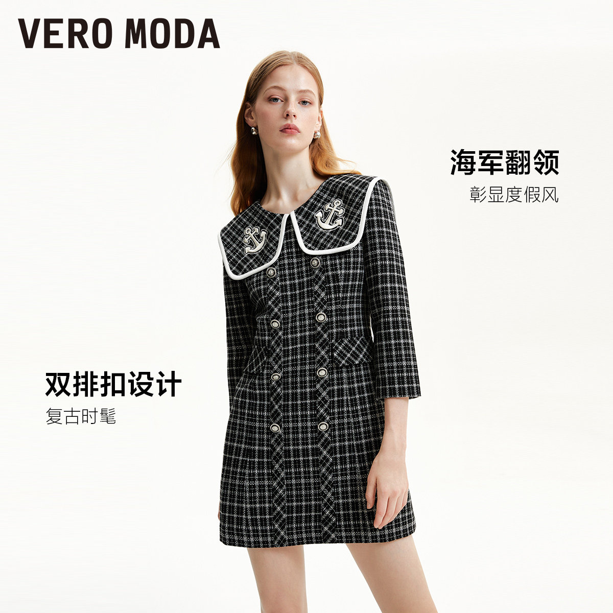 Vero Moda奥莱连衣裙子秋冬清仓航海风翻领双排扣复古格纹女百搭