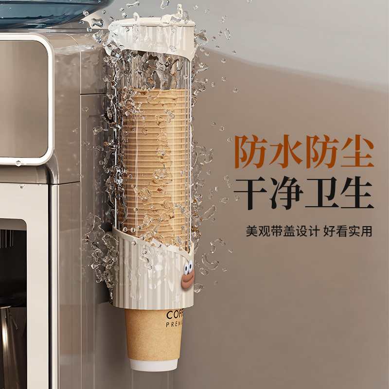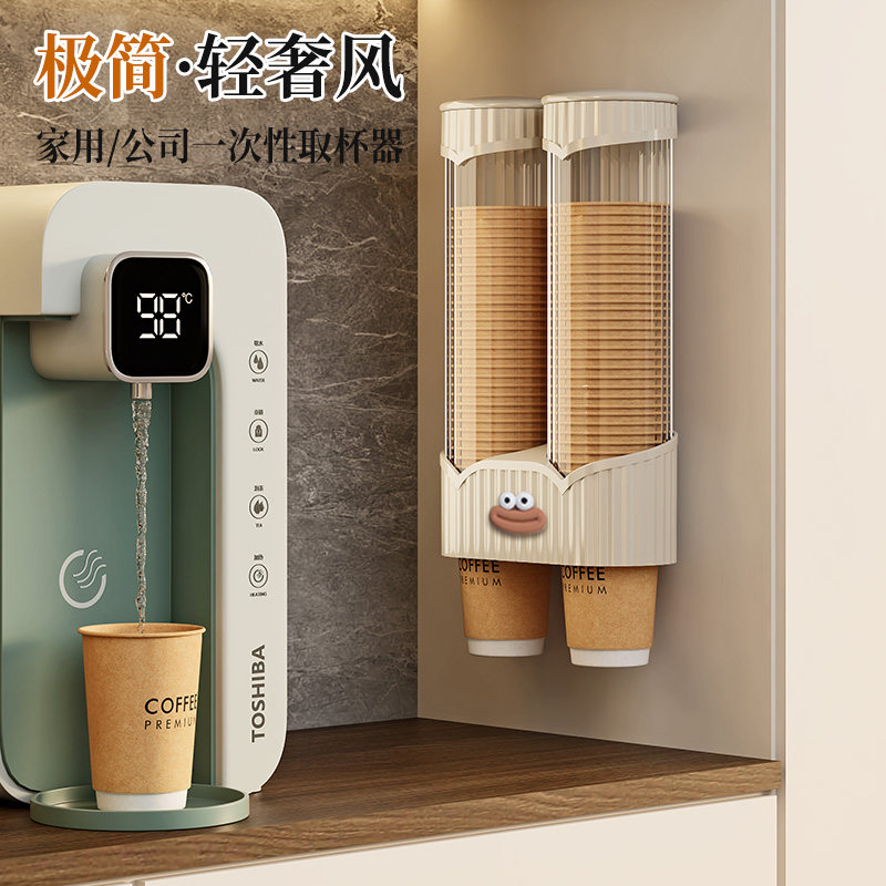 一次性杯子挂架自动取杯器家用挂壁式纸杯架创意水杯收纳家用架子