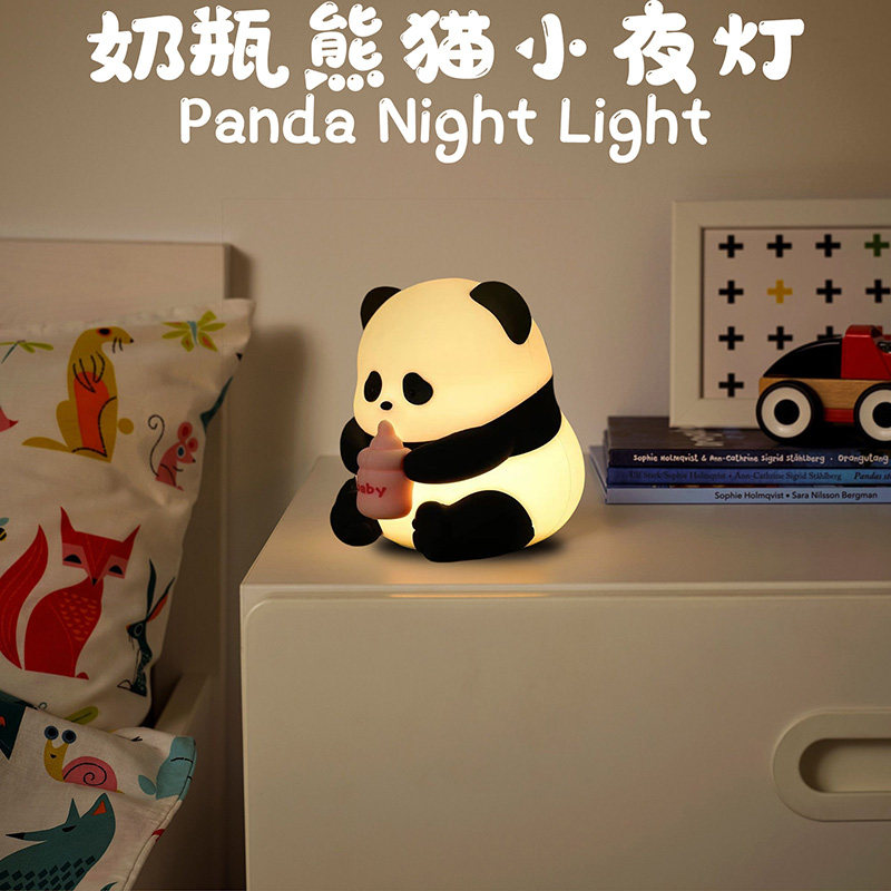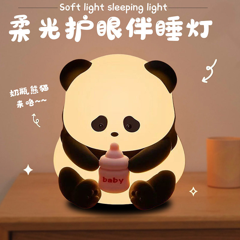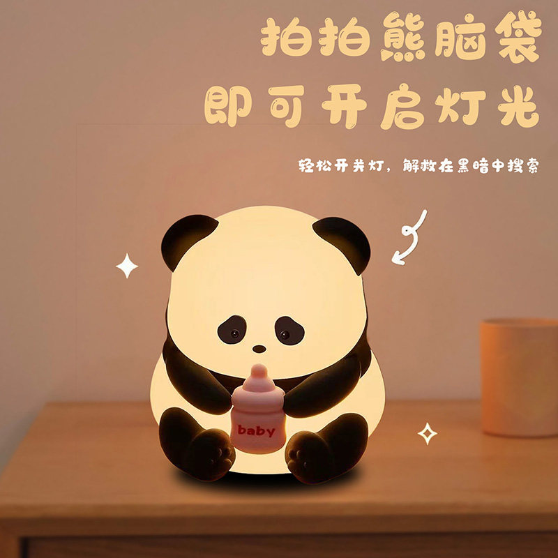 熊猫小夜灯卧室婴儿喂奶护眼灯儿童睡眠灯床头氛围硅胶拍拍灯温馨
